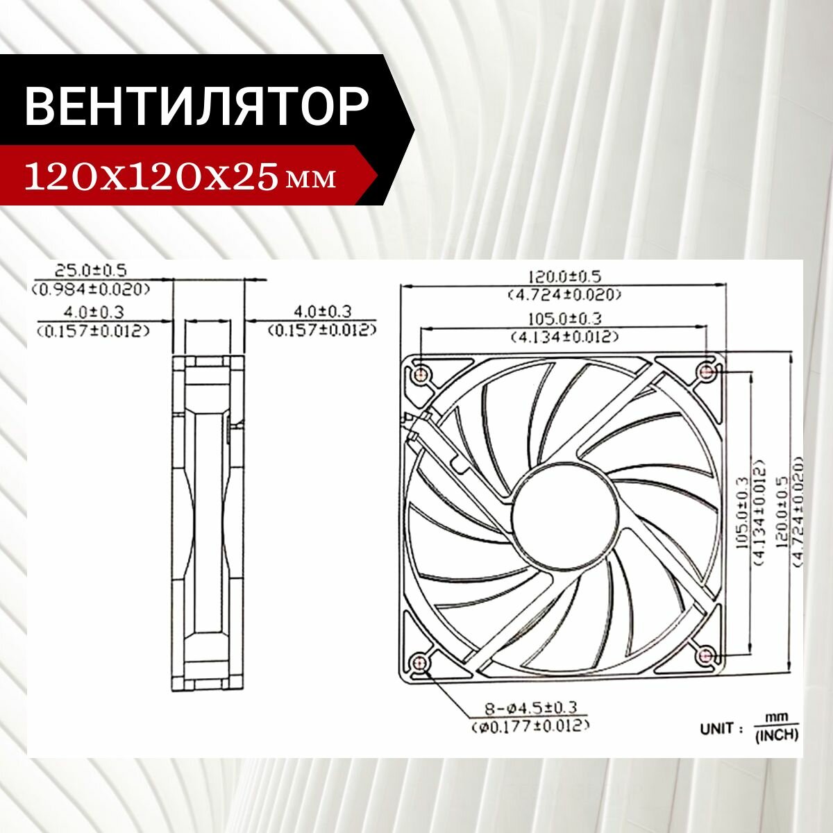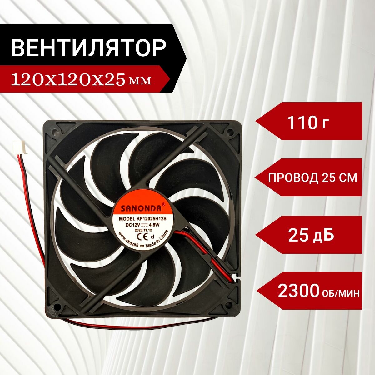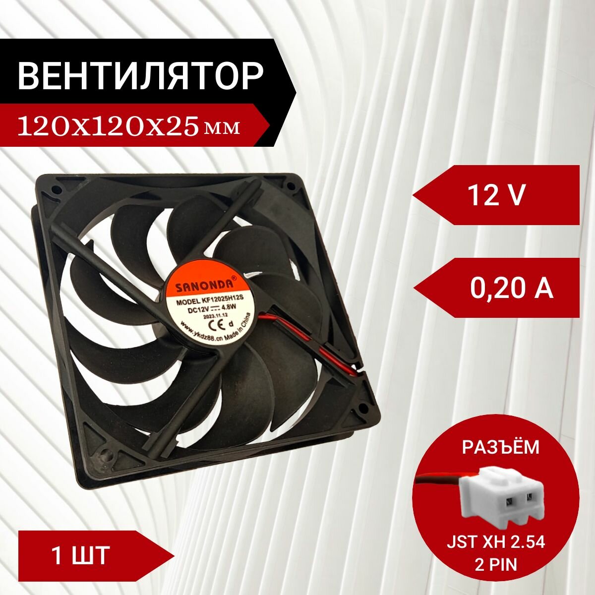 Вентилятор / Кулер 12V DC 0.2A 120х120х25мм 2.4W 2 PIN интересное:
