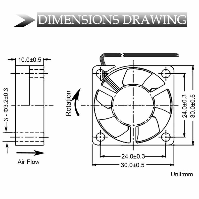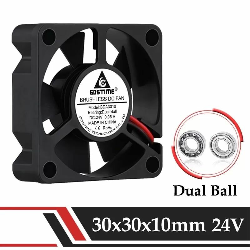 Вентилятор охлаждения Осевой: 24V/0.06A 30х30х10 мм Подшипник качения GDSTIME для 3D принтера и ЧПУ интересное: