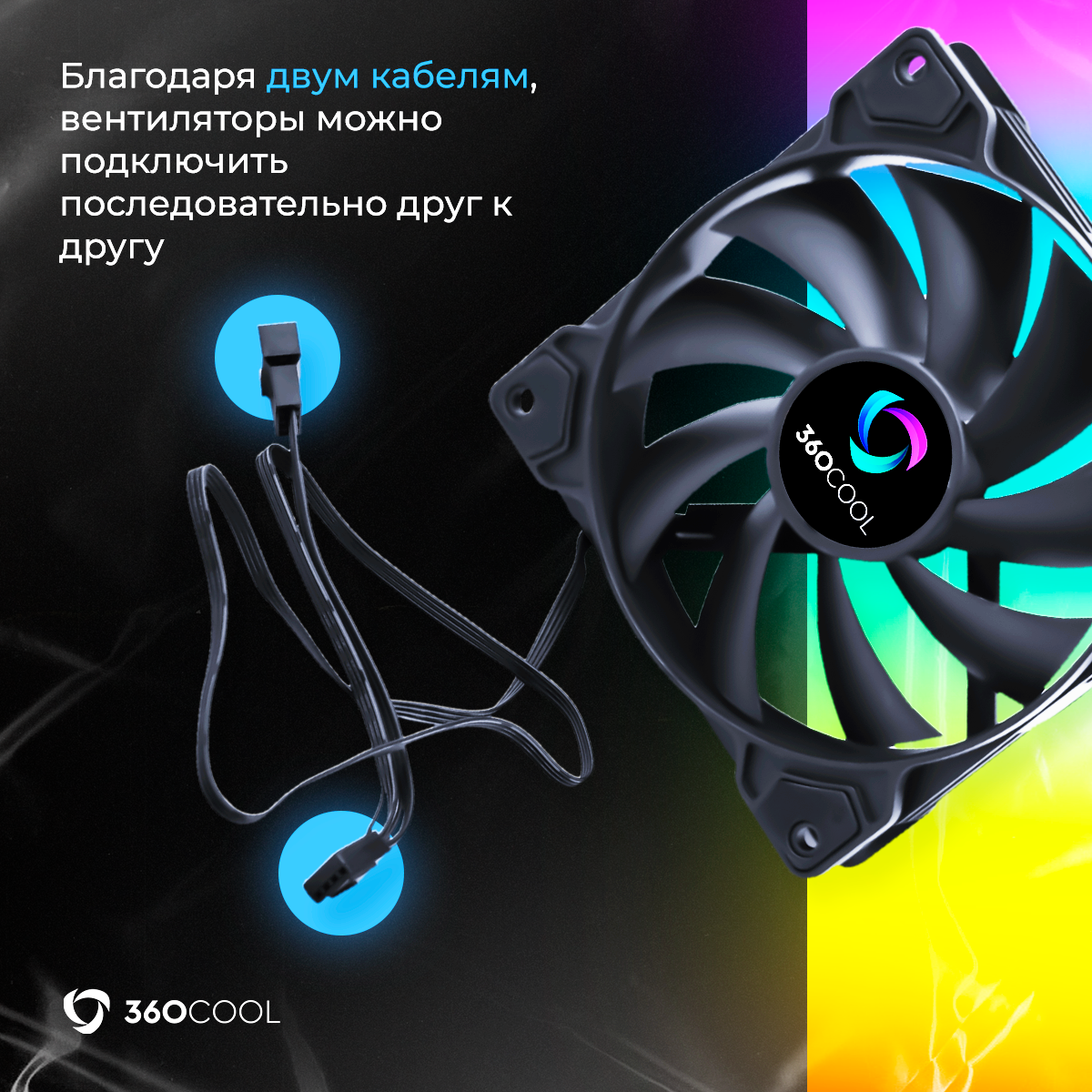 Кулер (вентилятор) 360COOL для корпуса компьютера 120мм, подключение к ПК через 4-pin PWM, длина кабеля 50см, черный интересное:
