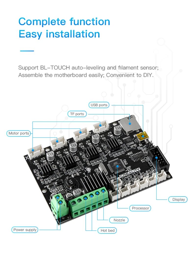 Ниже Вы можете прочитать отзывы на Плата управления Creality v4.2.7 для Ender 3 с драйверами TMC2225., ознакомится с подробными характеристиками, посмотреть интересные обзоры и фотографии на Плата управления Creality v4.2.7 для Ender 3 с драйверами TMC2225..
