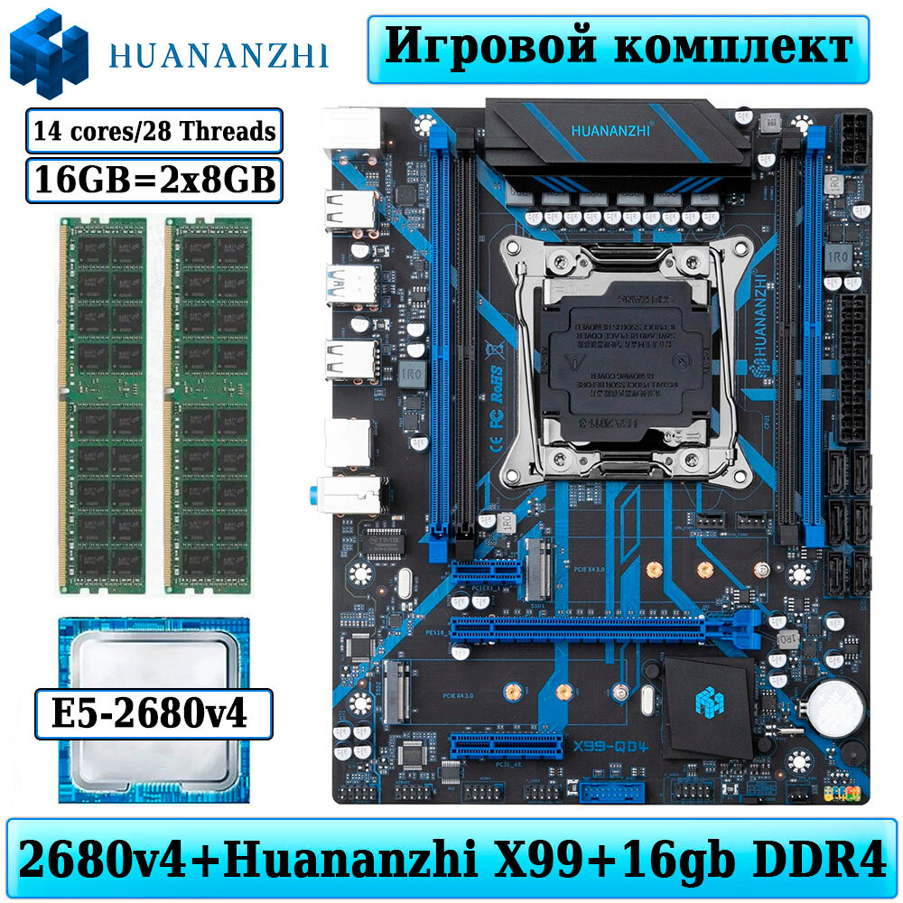 Комплект материнская плата Huananzhi X99-QD4 + Xeon 2680V4 + 16GB DDR4 ECC REG 2x8GB