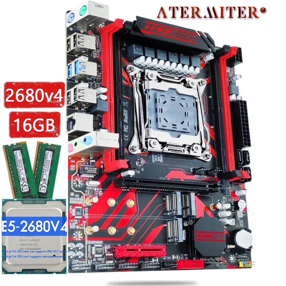 Комплект материнская плата Atermiter X99 D4 + Xeon 2680V4 + 16GB DDR4 ECC REG 2x8GB RED