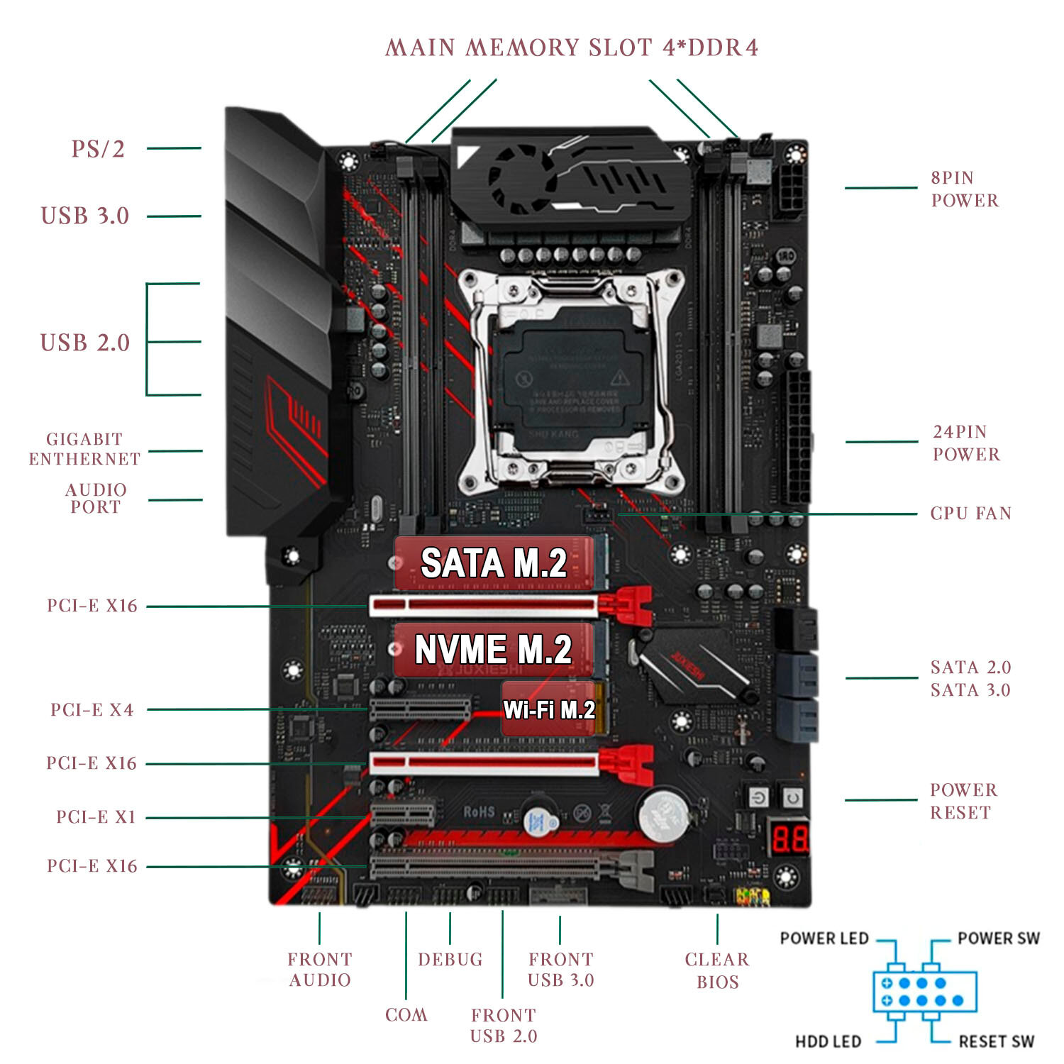 Комплект материнская плата Juxieshi X99-MR9A PRO + Xeon 2680V4 + 16GB DDR4 ECC 2x8GB Red