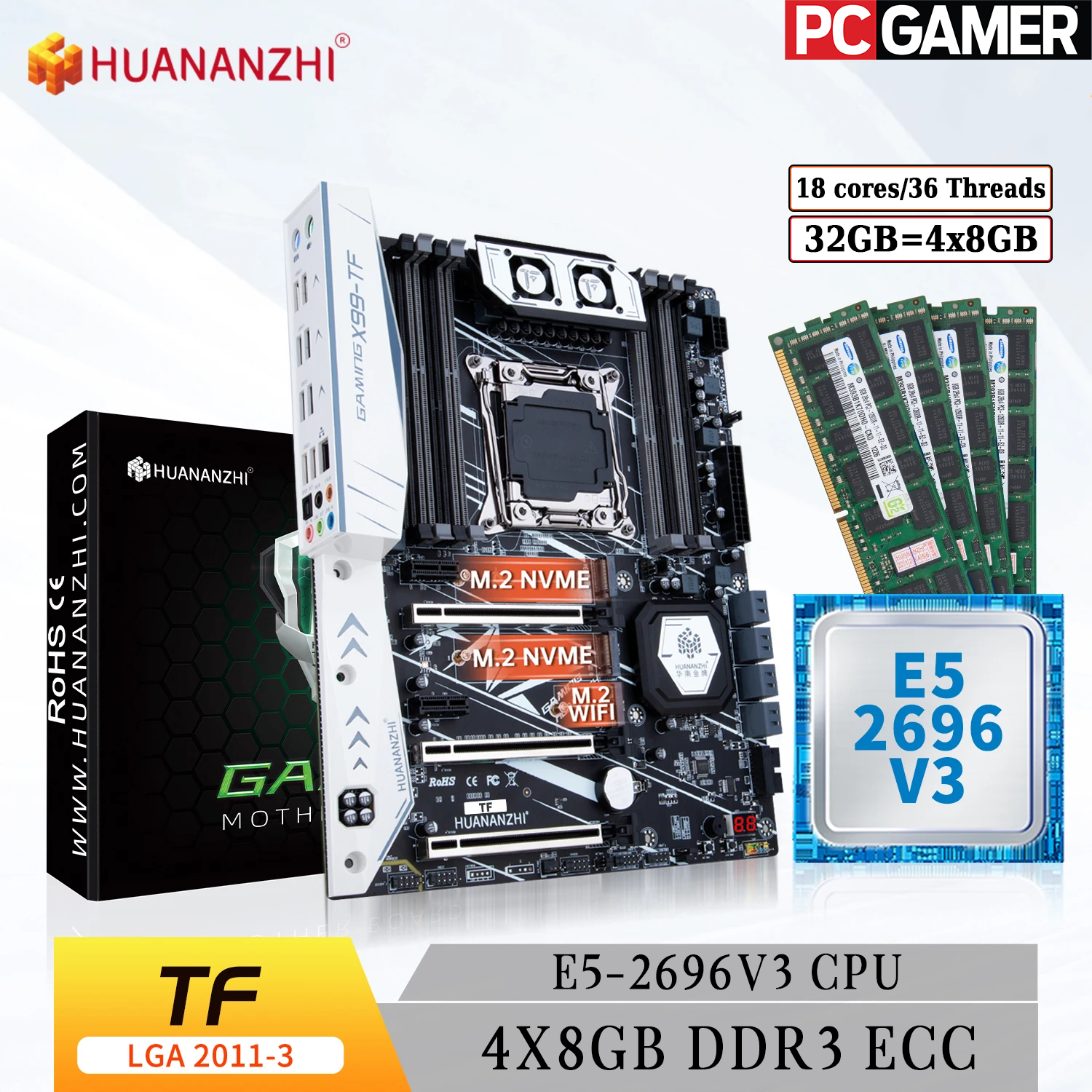 Купить Комплект материнская плата Huananzhi X99-TF + Xeon 2696V3 + 32GB DDR3 ECC 4x8GB