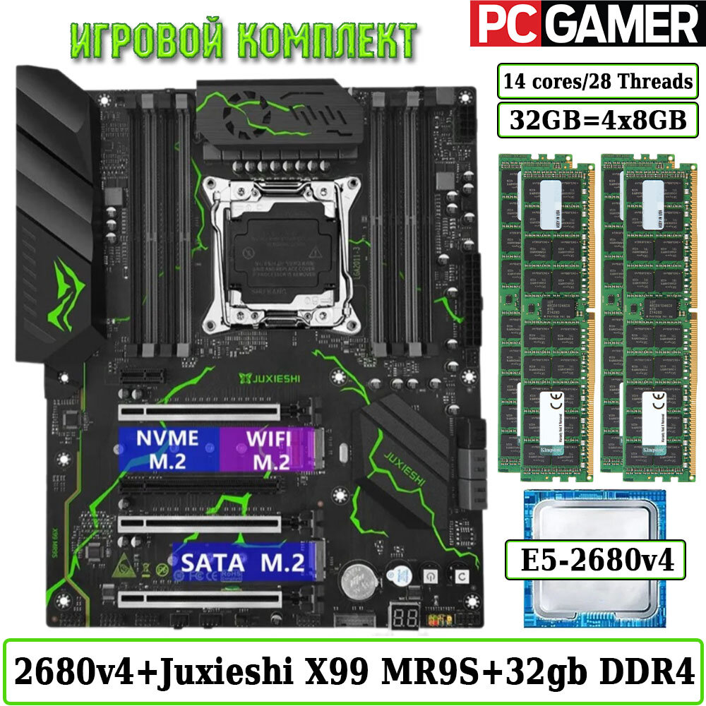 Купить Комплект материнская плата Juxieshi X99 MR9S + Xeon 2680V4 + 32GB DDR4 ECC 4x8GB