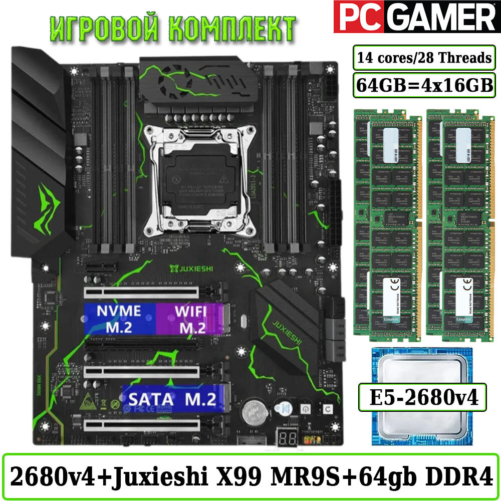 Купить Комплект материнская плата Juxieshi X99 MR9S + Xeon 2680V4 + 64GB DDR4 ECC