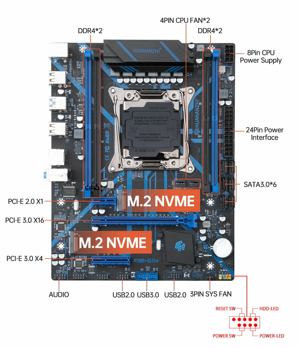 Комплект материнская плата Huananzhi X99-QD4 + Xeon 2680V3 + 16GB DDR4 3200Mhz интересное: