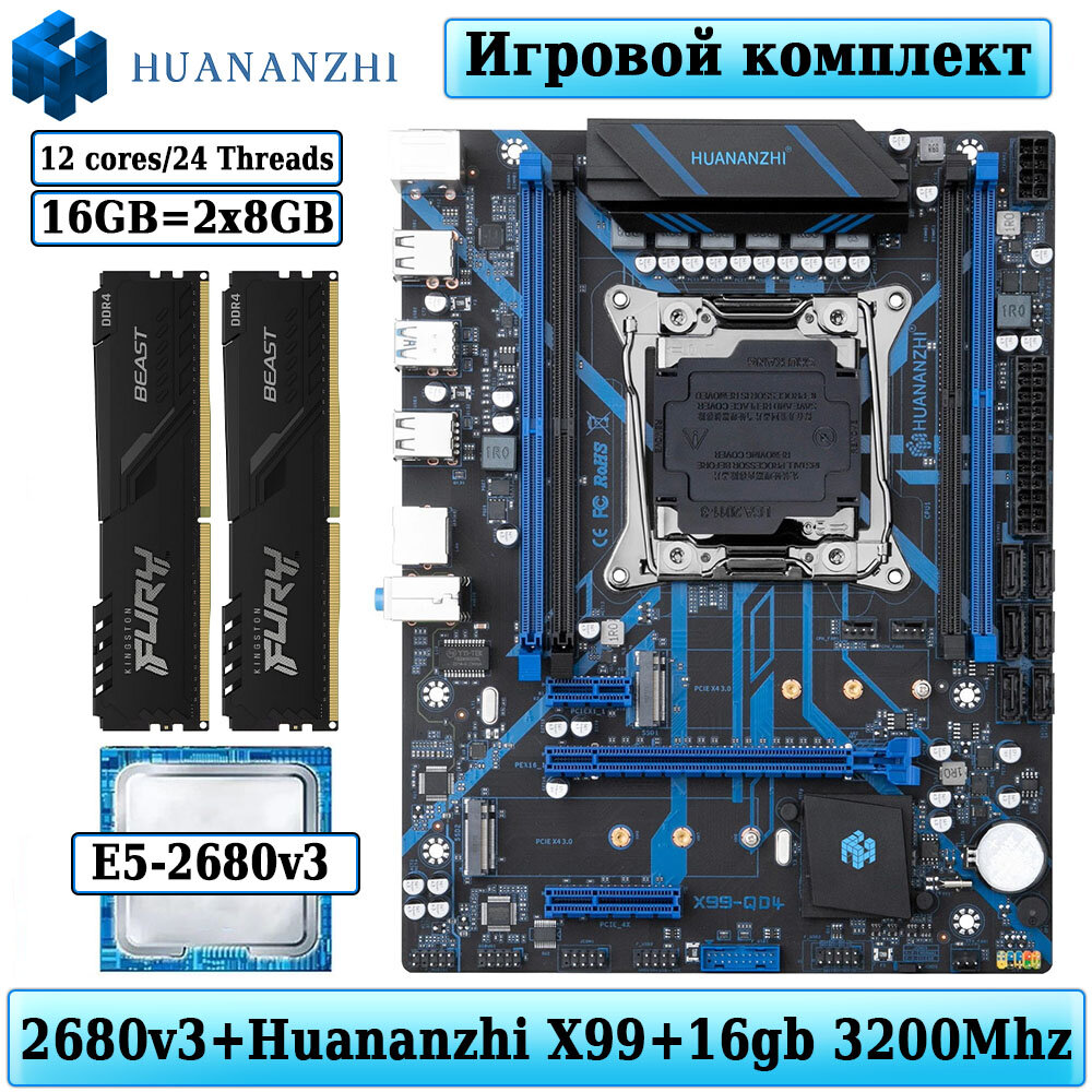 Купить Комплект материнская плата Huananzhi X99-QD4 + Xeon 2680V3 + 16GB DDR4 3200Mhz