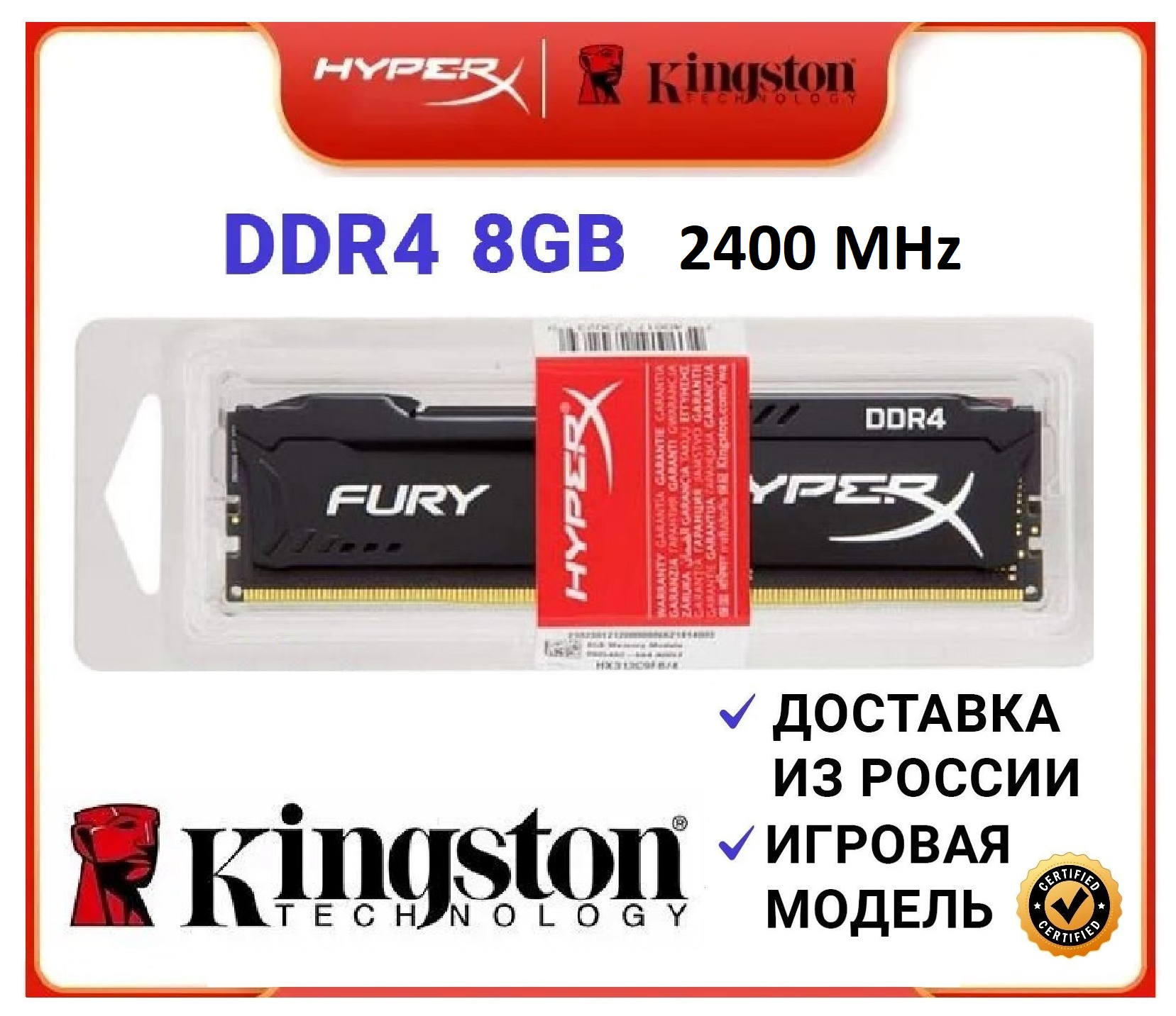 Оперативная память Kingston Hyperx Fury DDR4 8Gb 2400Mhz (HX424C15FB/8) интересное: