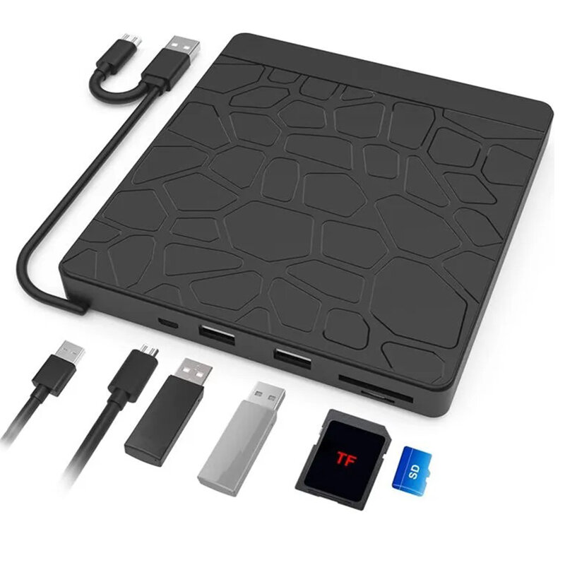 Внешний дисковод, оптический привод USB 3.0, Type C на CD / DVD / 2*USB / Micro USB / SD разъем / TF slot - черный CD-rom DVD ром CD ром интересное: