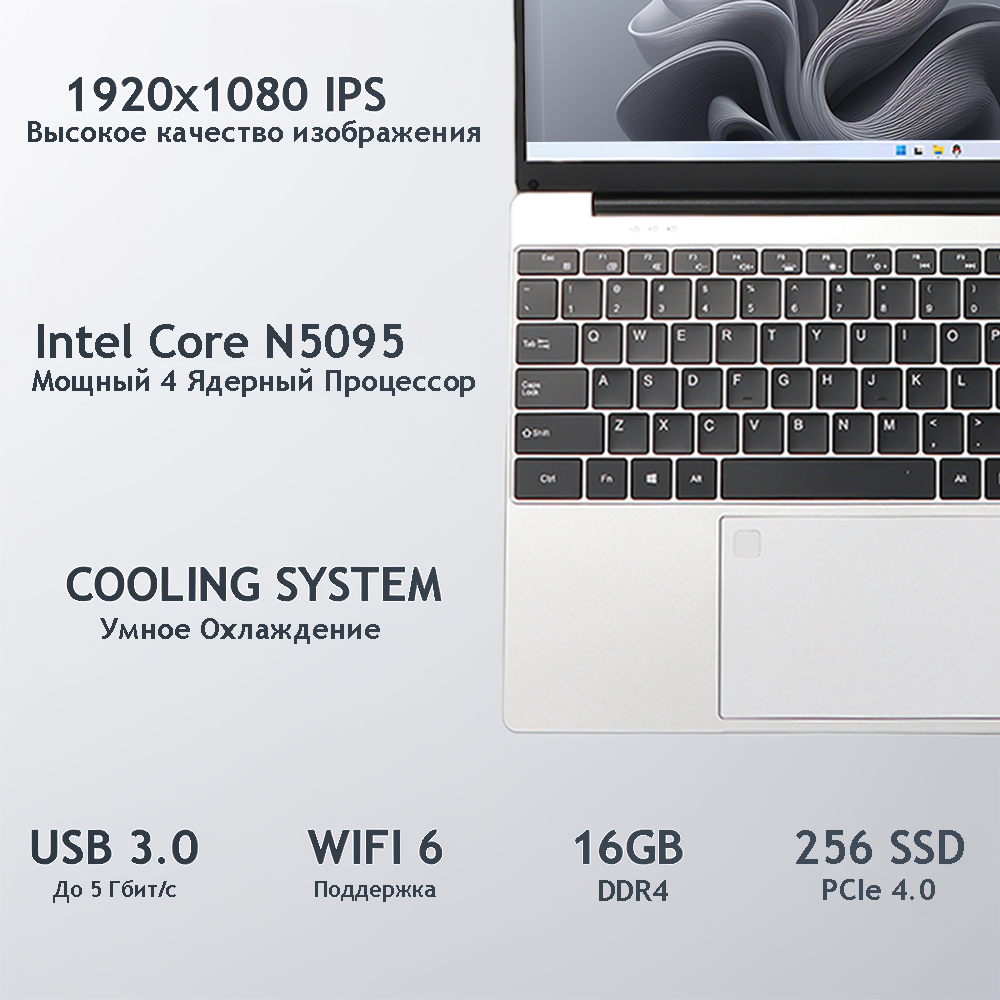 Сохранить15.6" Ноутбук для работы и учебы, Notebook, RAM 16 ГБ, SSD 256, IPS Full HD 1920x1080, Intel N5095, Windows 11 pro, цвет Серый, русская раскладка интересное: