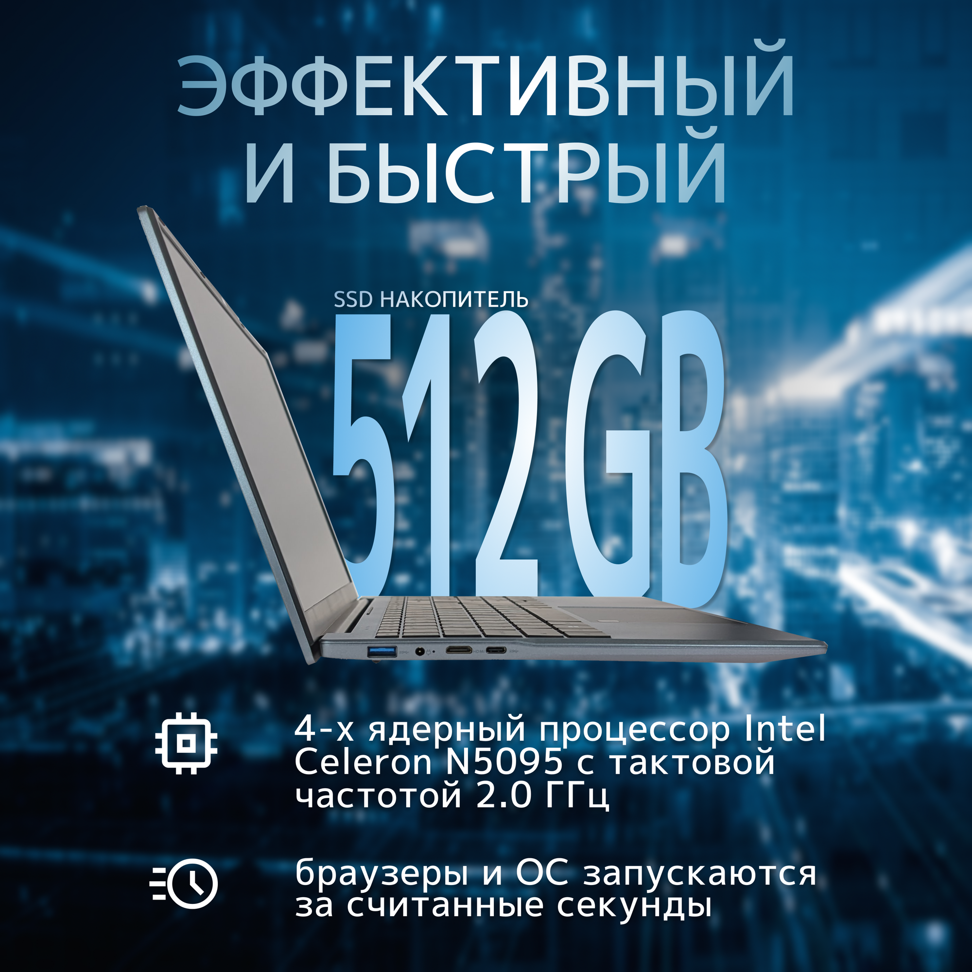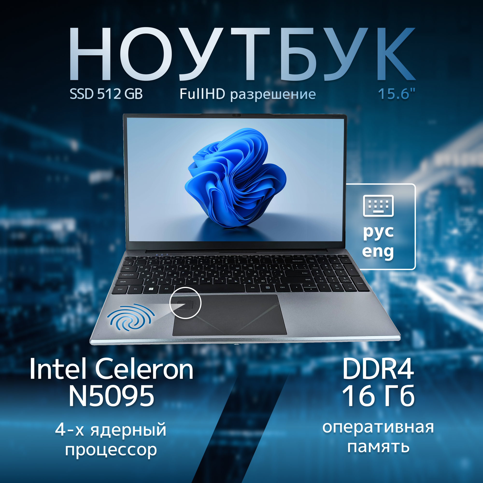 Ноутбук 15.6" Notebook Intel N5095 2.0 GHz, RAM 16GB, SSD 512GB, WiFi, Bluetooth, Silver , Black Keyboard Ru интересное: