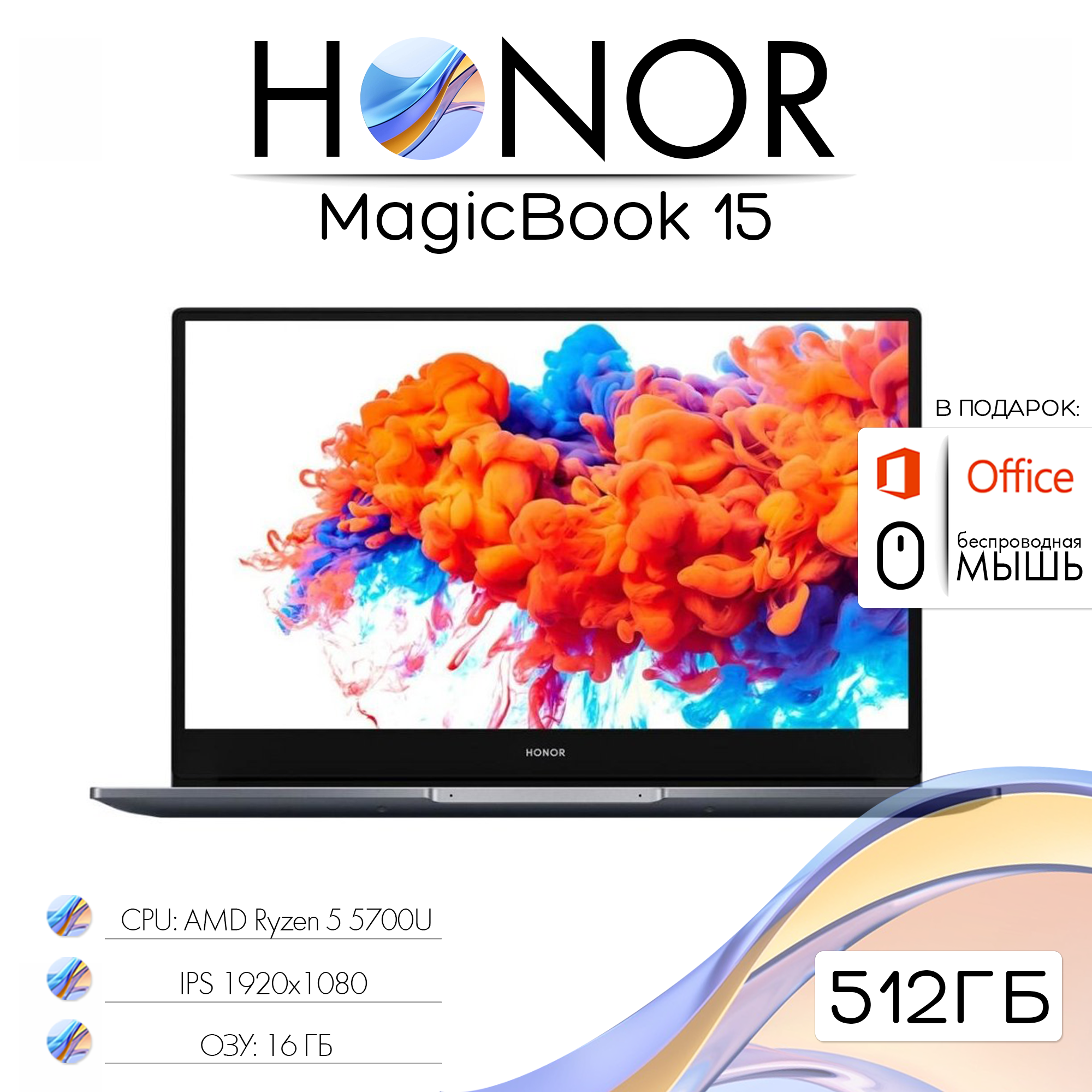Купить 15.6" Ноутбук Honor MagicBook 15, 1920x1080, AMD Ryzen 7 5700U, 16/512 ГБ, Windows 11 pro, русская клавиатура