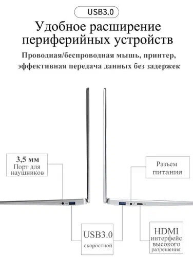 15,6 ноутбук Intel Celeron N5095 (до 2.9 GHz, 4 ядра), RAM 32 GB, SSD 256 GB, Intel UHD Graphics, Русская клавиатура, Windows 10 Pro