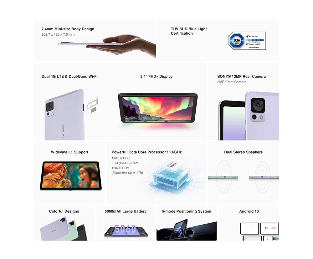Планшет DOOGEE "T20 Mini" 4/128GB, 8,4", IPS, 60Hz, Android 13, 4G, черный