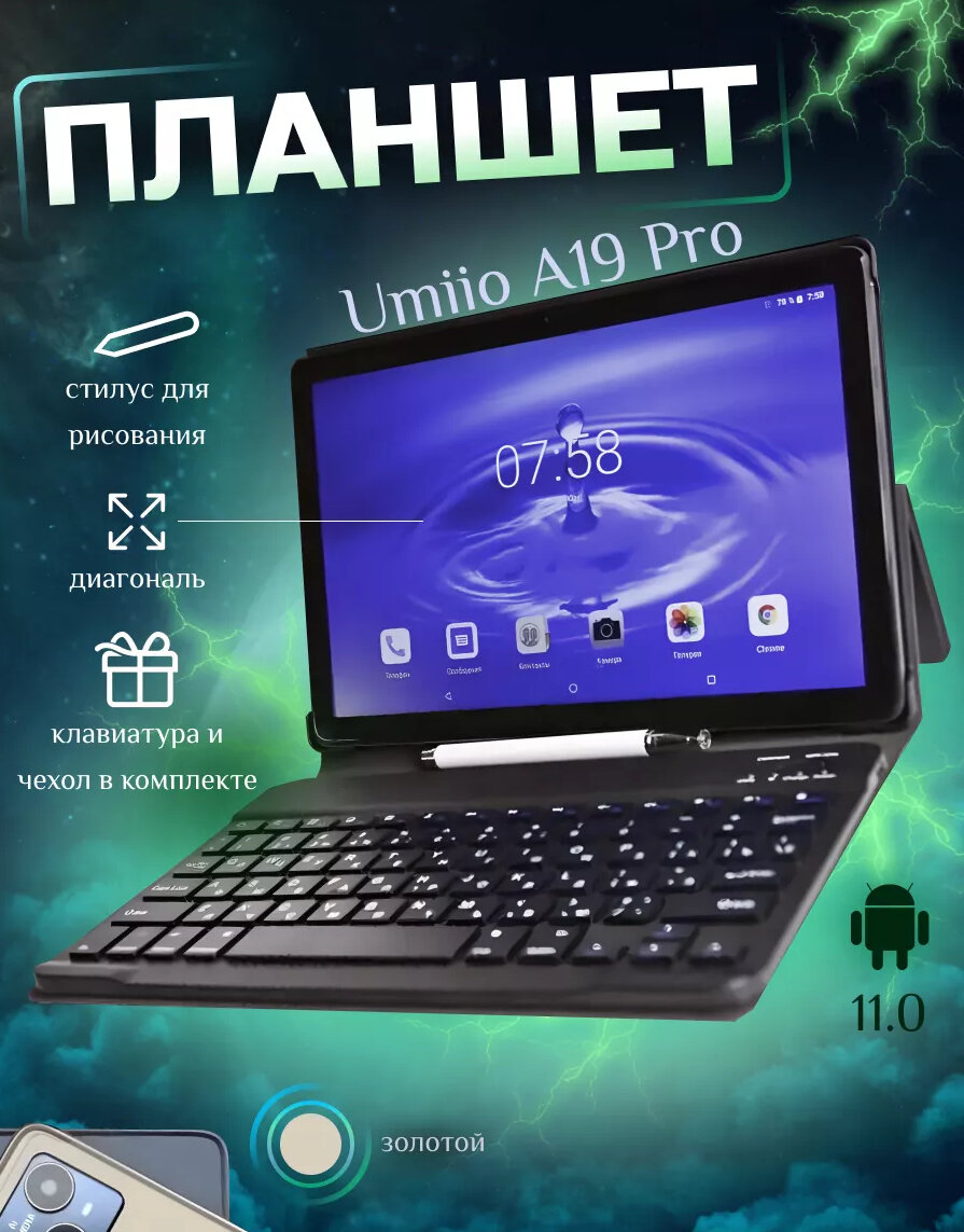 Планшетный компьютер Umiio/Планшет a19 Pro андроид с клавиатурой 10.1" 6GB 128GB/Золотистый интересное: