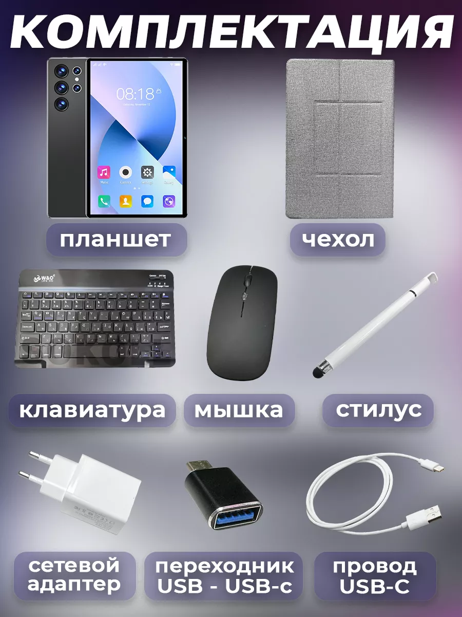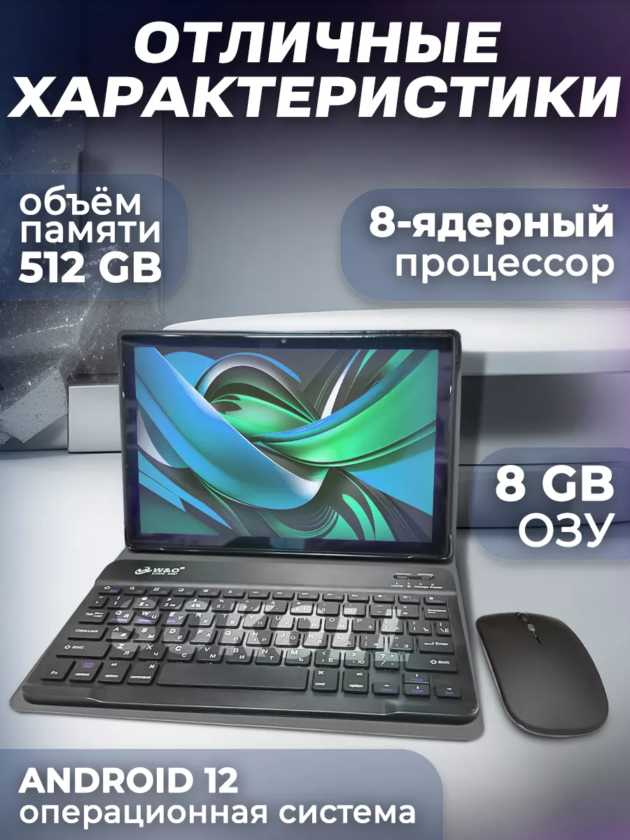 Планшет Детский с клавиатурой W&O 9, Android 12.0, 8gb/512gb, Серый интересное: