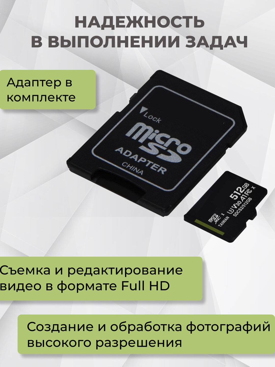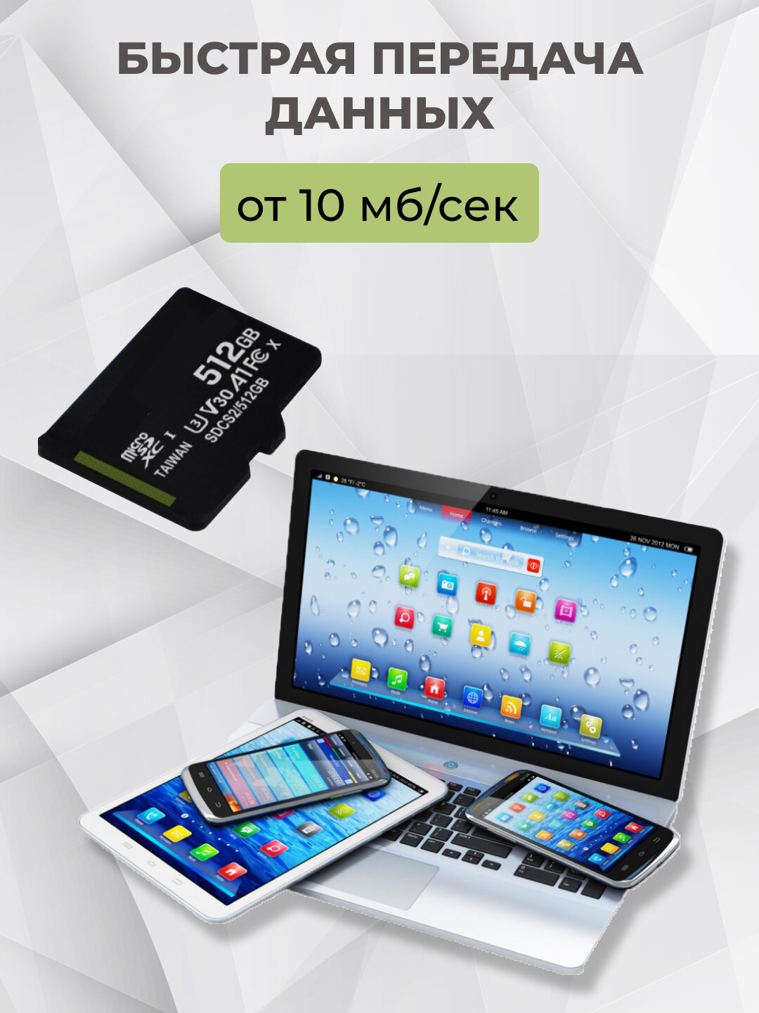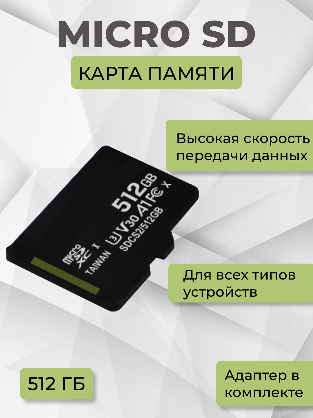 Карта памяти 512Гб microSDHC с переходником на SD, 10 class интересное: