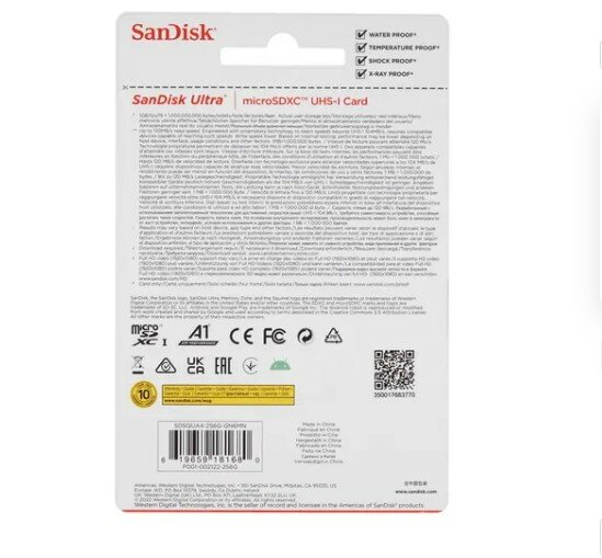 Карта памяти SanDisk microSDXC 256 ГБ Ultra Class 10, UHS-I, U1, A1 (150 Mb/s)