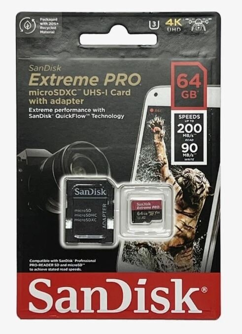 СохранитьКарта памяти SanDisk Extreme PRO microSDXC 64 ГБ Class 10 UHS-I U3, V30, A2 (R/W 200/90 Mb/s) + SD адаптер интересное: