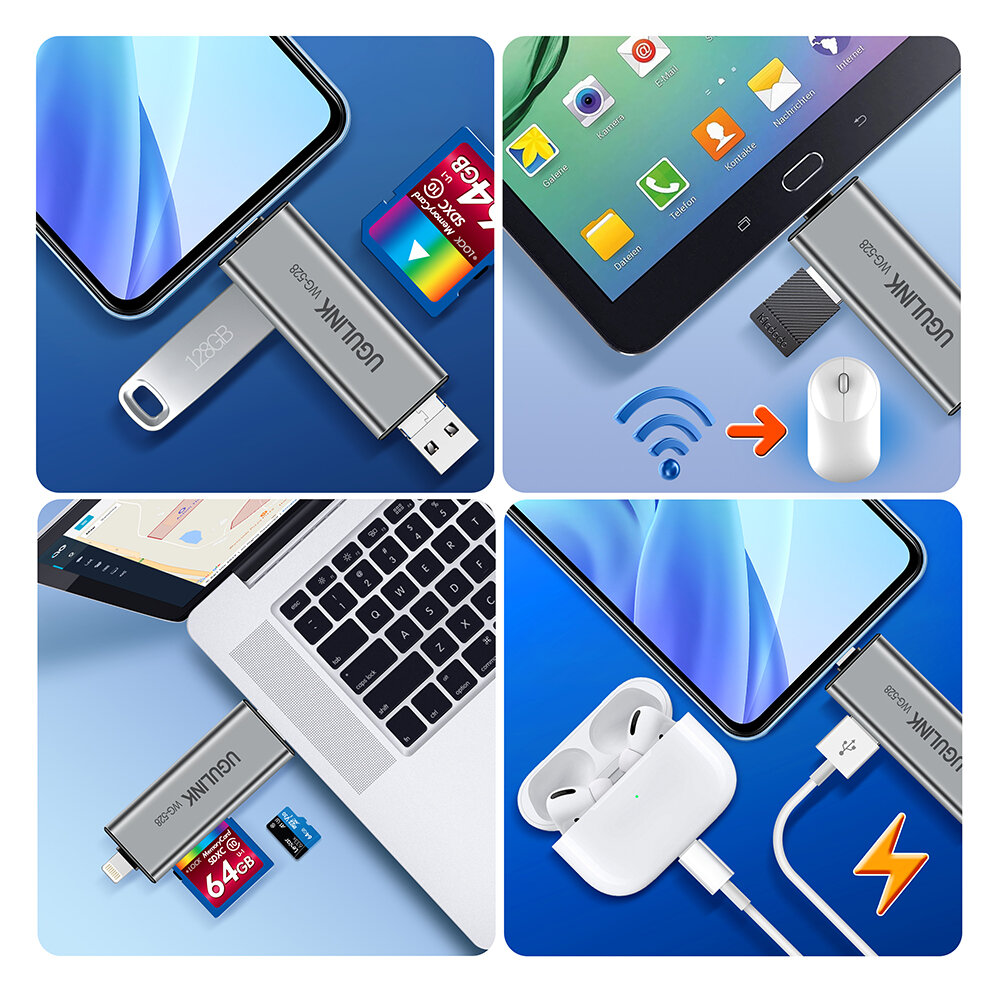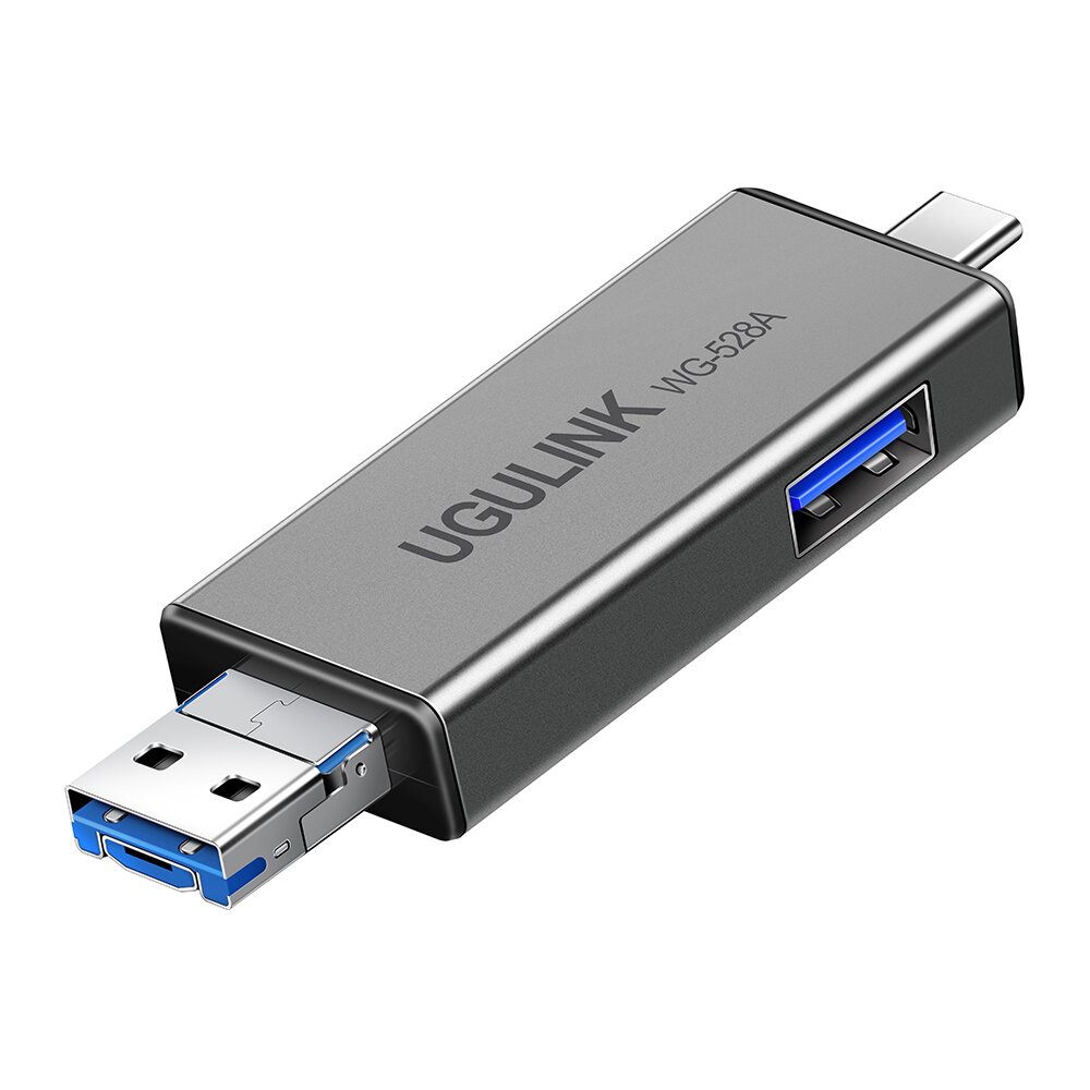 Купить Универсальный Адаптер OTG Картридер 6 в1 для SD + MicroSD / TF карт и USB диск, три выхода Type-C + USB 3.0 + microUSB, UGULINK WG-528A