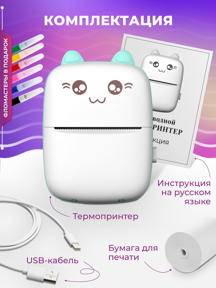 | Комплектация | принтер, провод USB, рулон бумаги, фломастеры, инструкция |