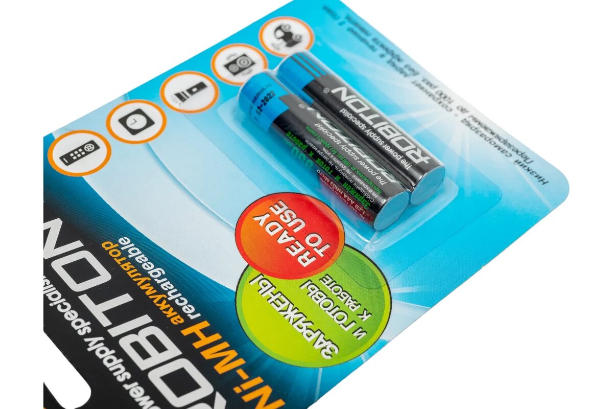 Аккумуляторные батарейки (мизинчиковые) AAA (LR03) 950 mAh, 1.2 V ROBITON, NiMH, предзаряженные, в упаковке 2 штуки