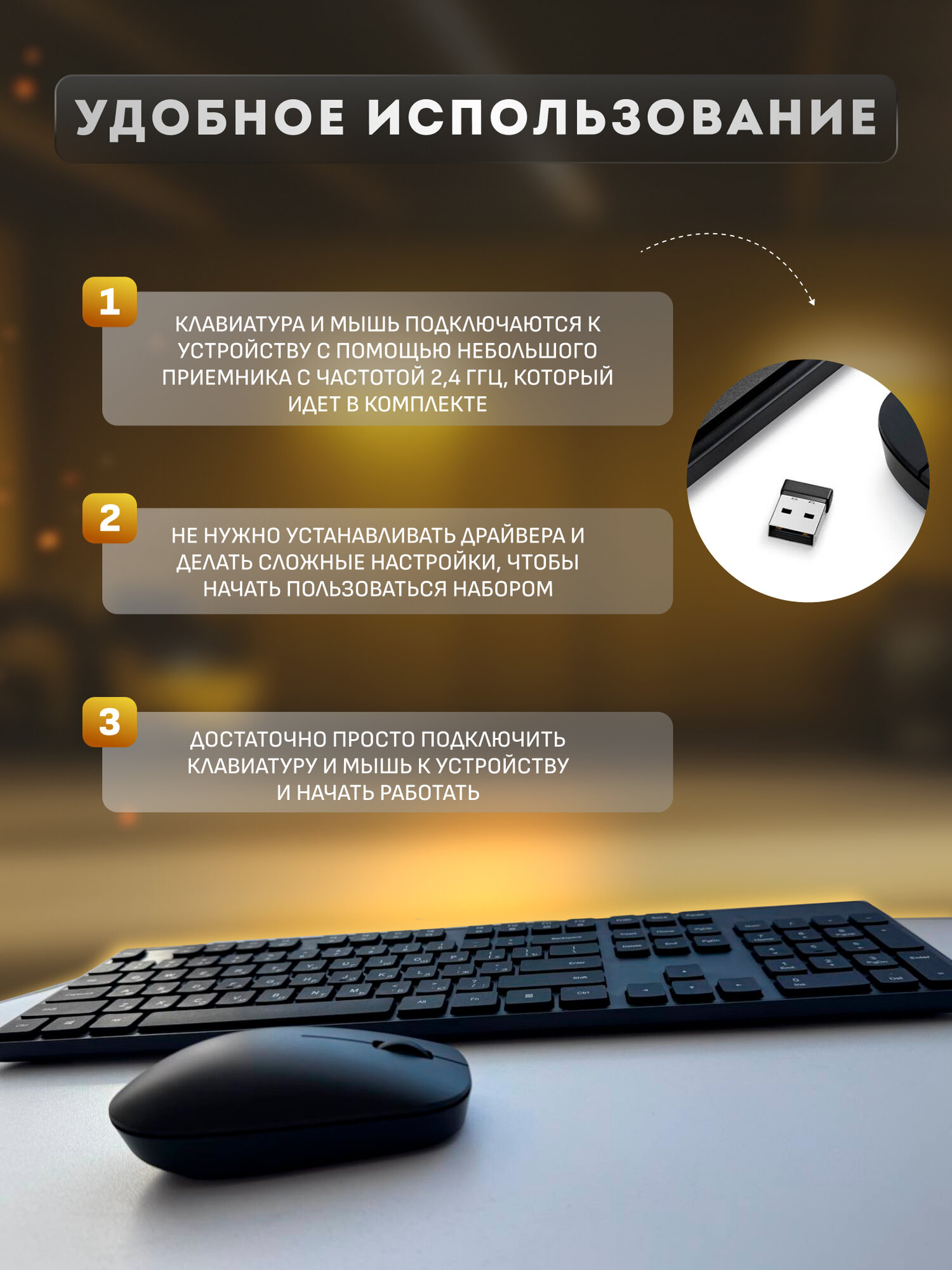 Комплект беспроводной клавиатуры и мышь Xiaomi Mi Wireless Keyboard and Mouse Combo интересное: