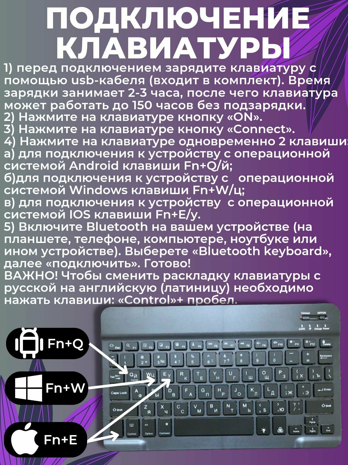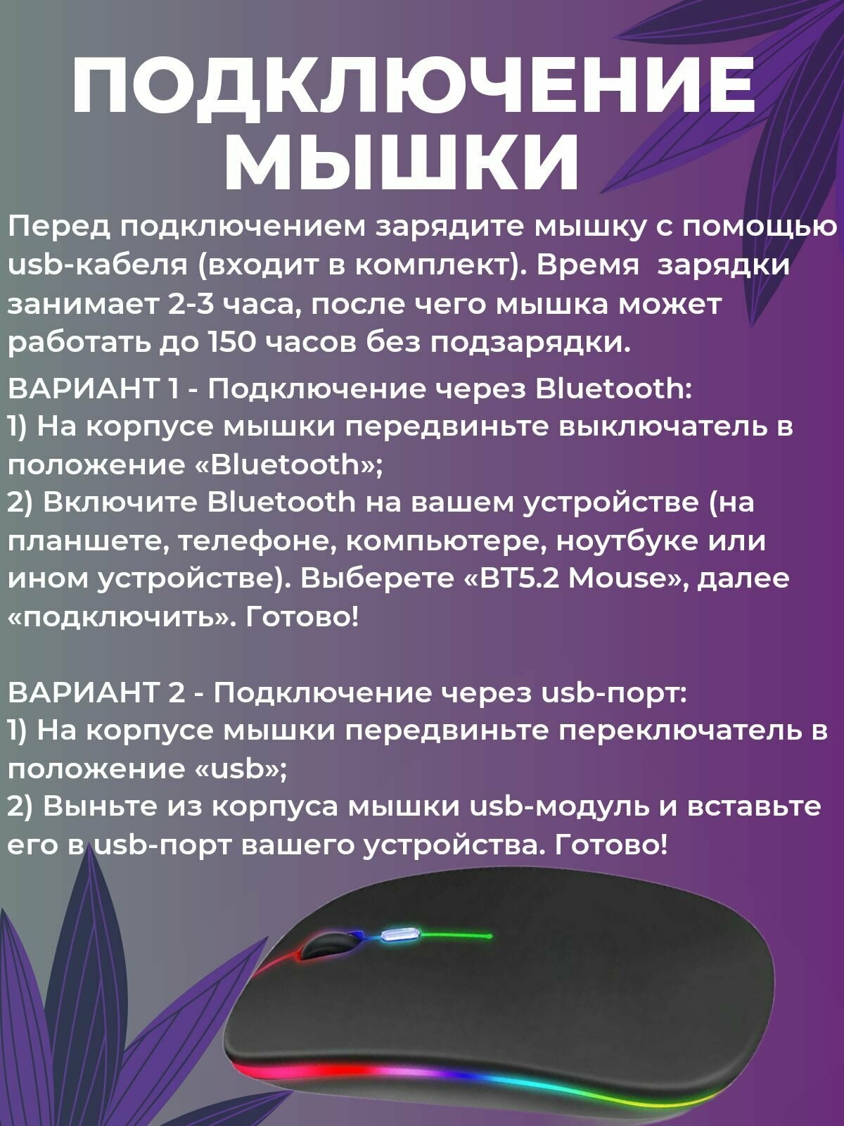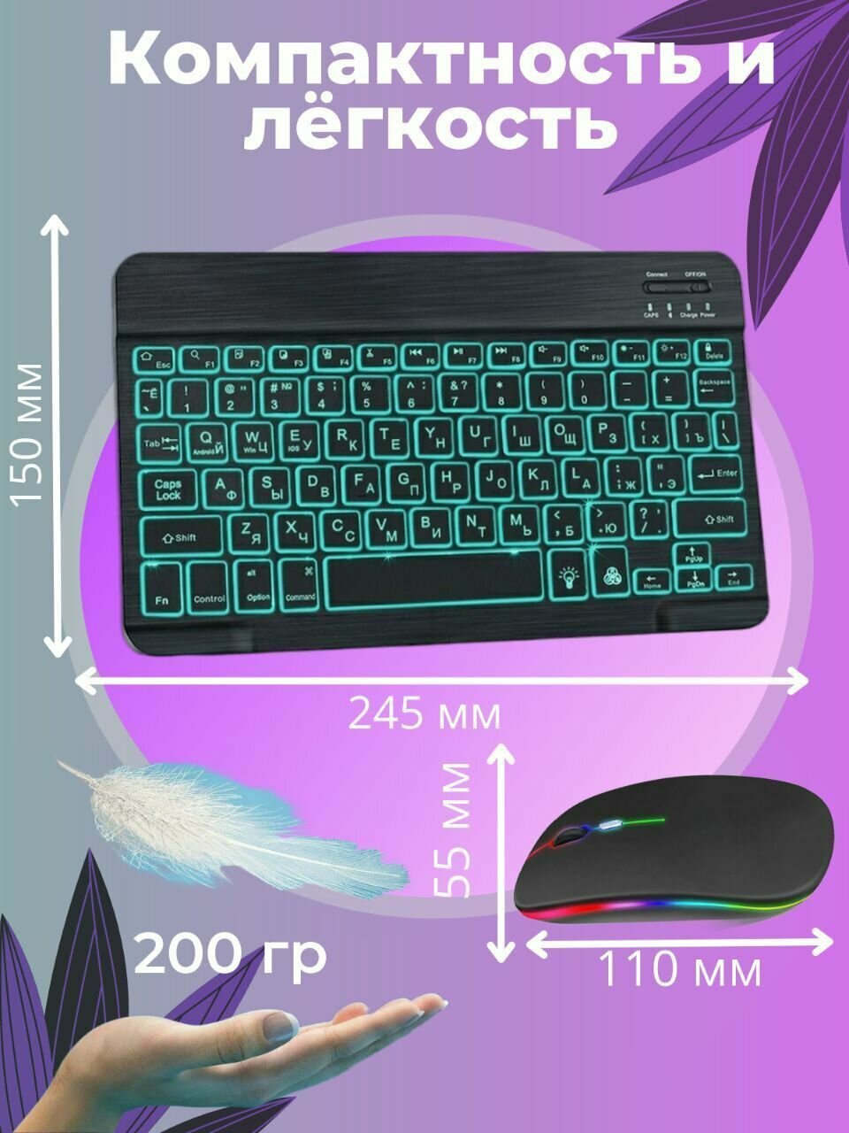 Клавиатура и мышь мини беспроводная Bluetooth с подсветкой Android IOS Windows черная интересное: