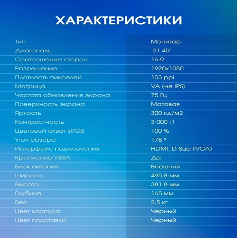 Монитор Xiaomi Redmi Display 21.45" 75Hz ,CN, черный интересное: