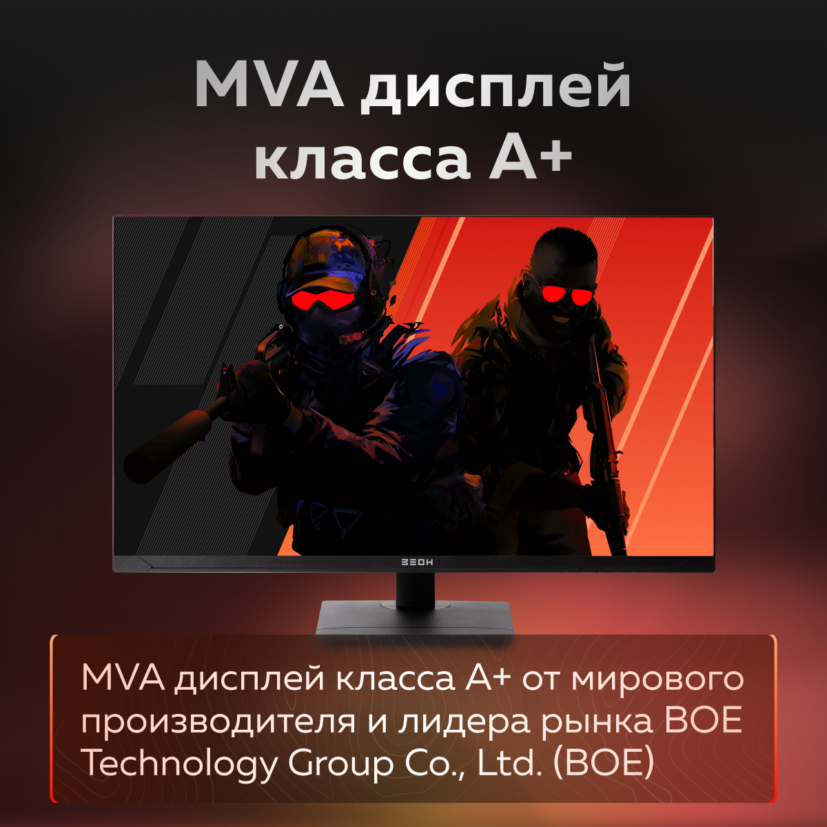 | Дополнительная информация | настройка скорости отклика, MVA дисплей класса А+ от мирового производителя и лидера рынка BOE Technology Group Co., Ltd. (BOE) |