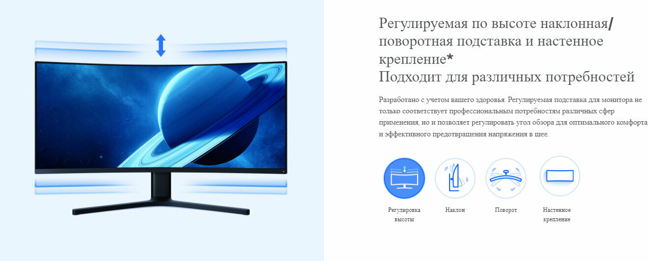 Монитор Xiaomi Mi Surface Curved Display 34 (Black/Черный) интересное: