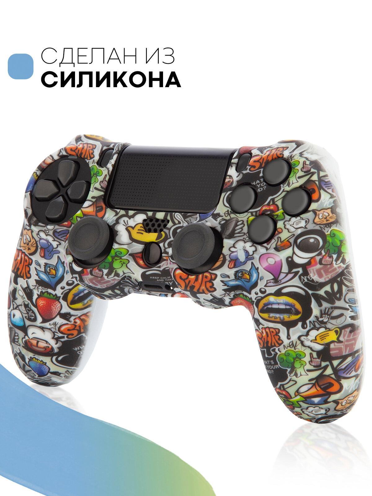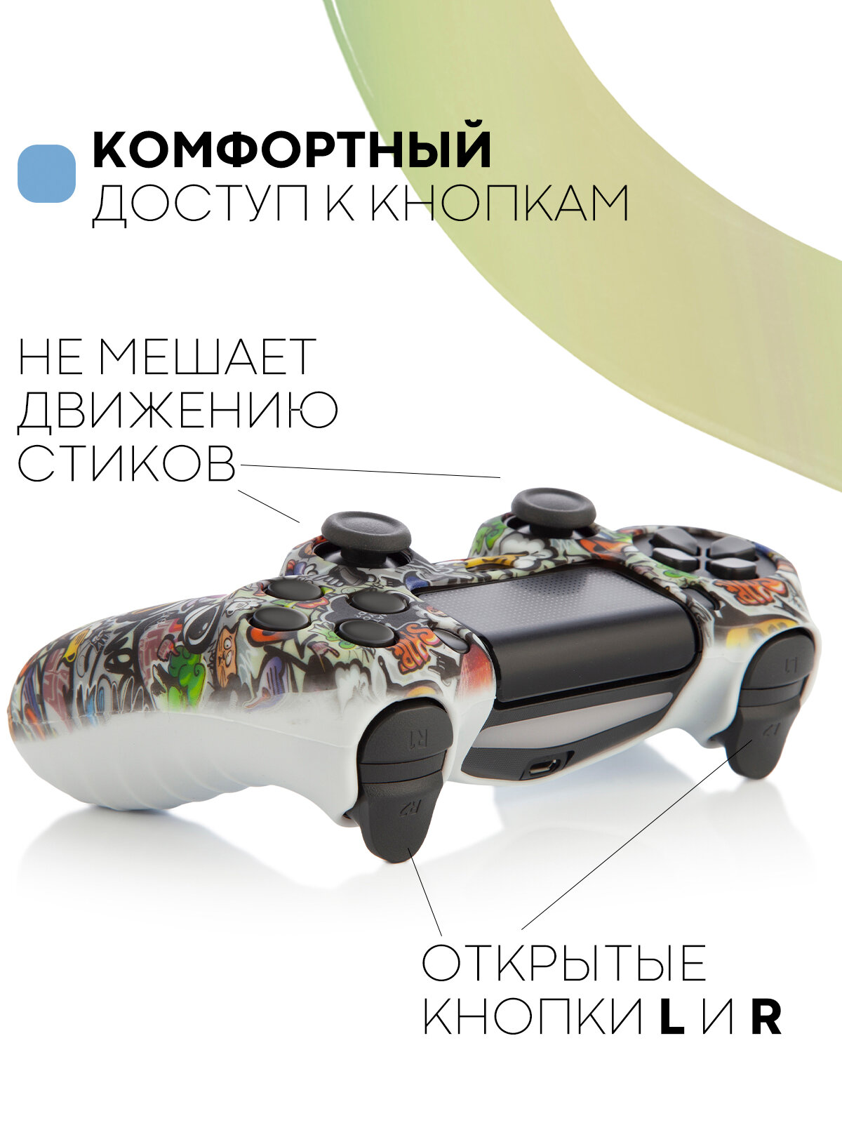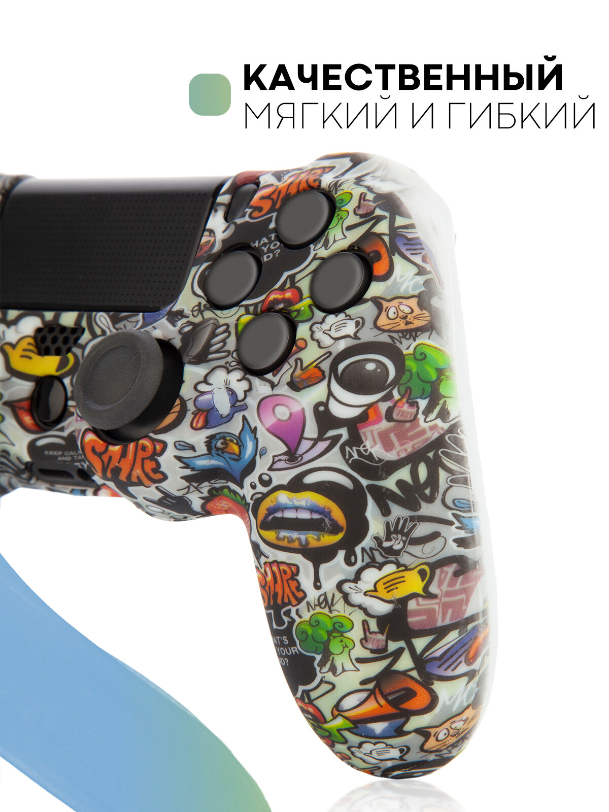 Защитный силиконовый чехол для геймпада PS4 (матовая накладка для контроллера ПС4) с рисунком, граффити