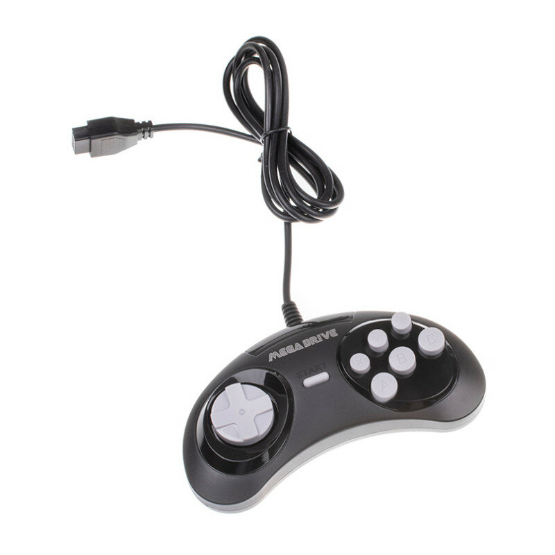 Джойстик для игровых приставок Mega Drive Sega Magistr 16-bit/Цвет черный с серыми кнопками / Комплект 1 шт / Узкий разъём 9 pin