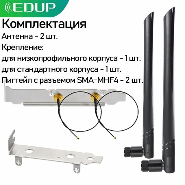 Антенна Wi-Fi 6dBi Dual Band 2.4/5 ГГц EDUP WiFi Antenna для модулей M.2 2230 NGFF интересное: