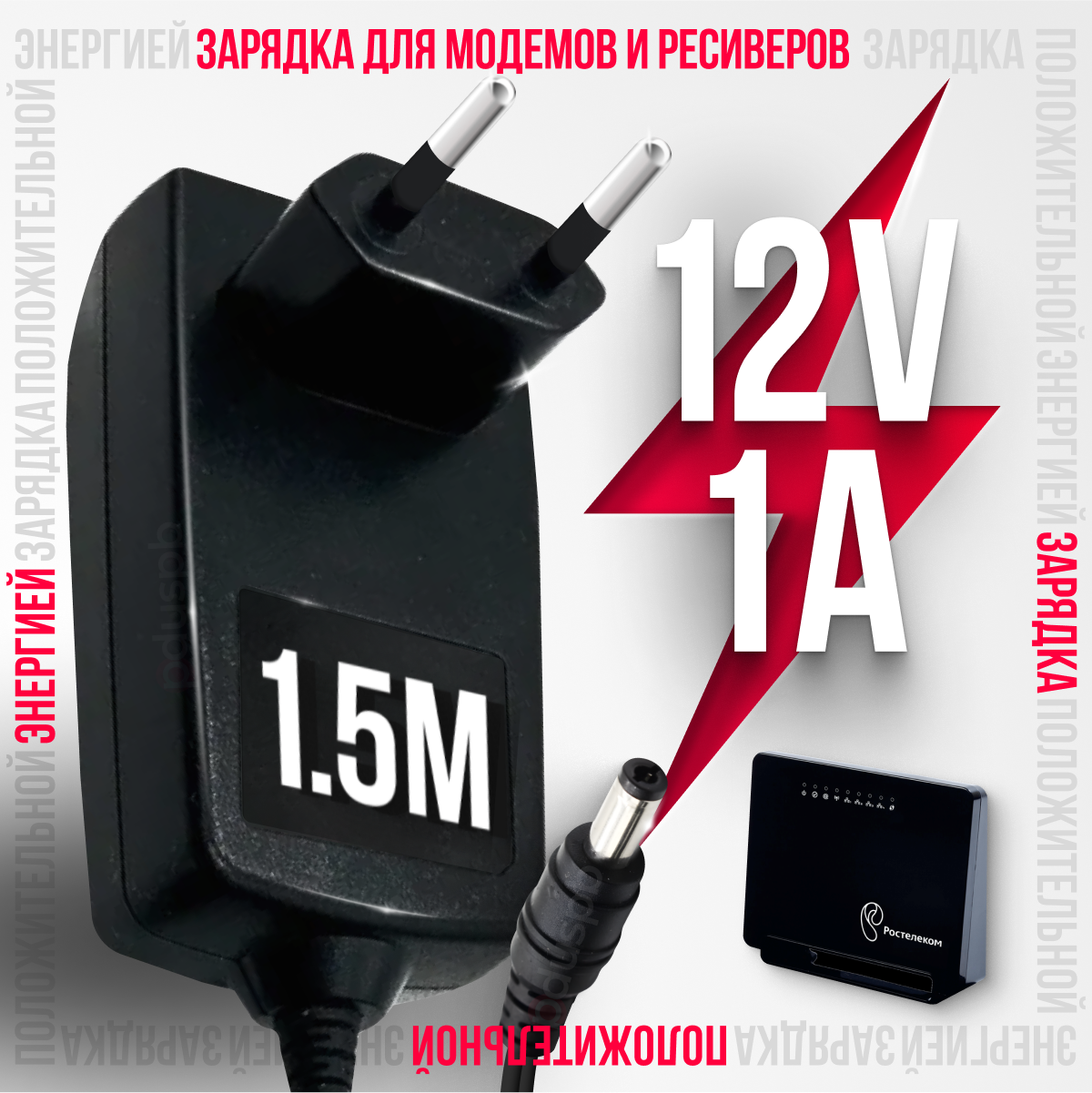 Блок питания / зарядное устройство 12V 1A 5.5 x 2.1 мм для модемов, ресиверов и ТВ-приставок МТС Ростелеком Wink Дом.ру интересное:
