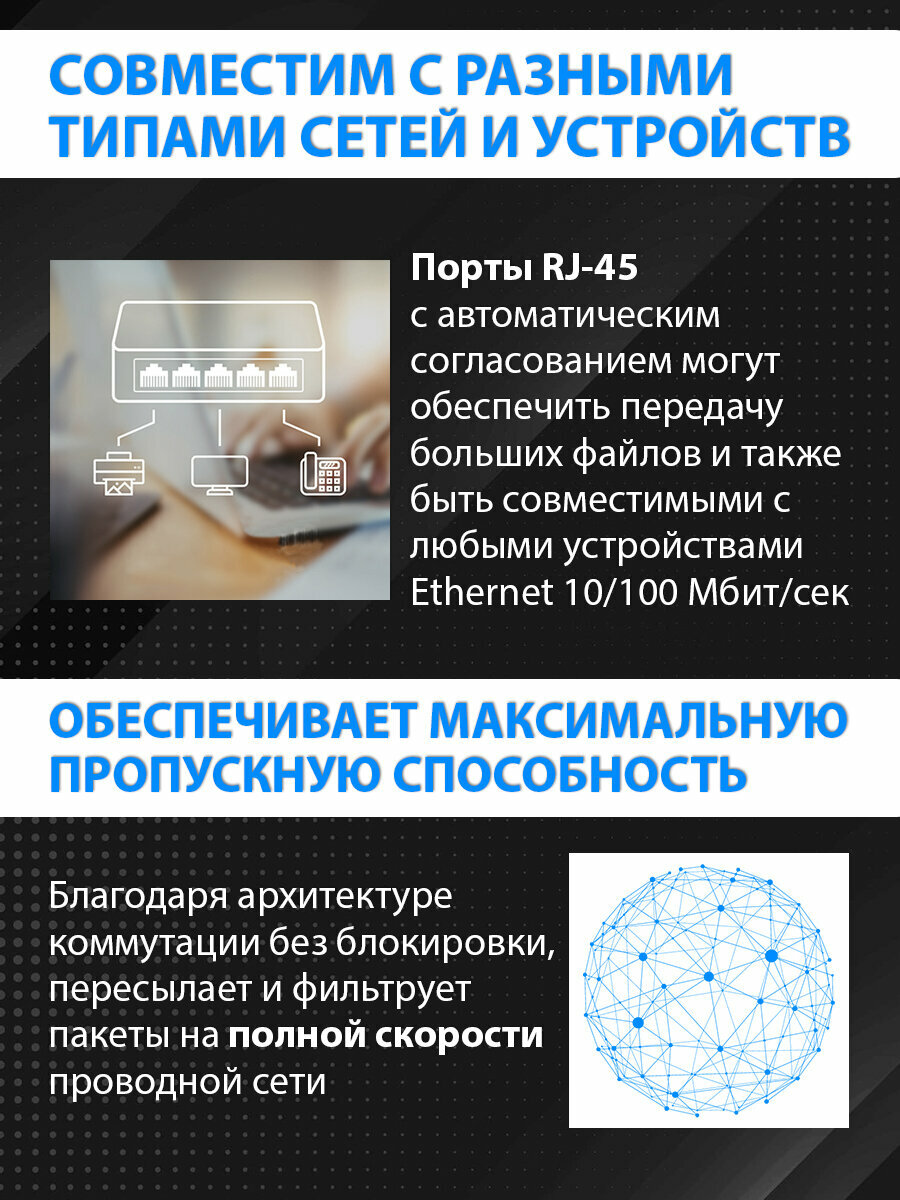 | Тип управления коммутатора | неуправляемый |