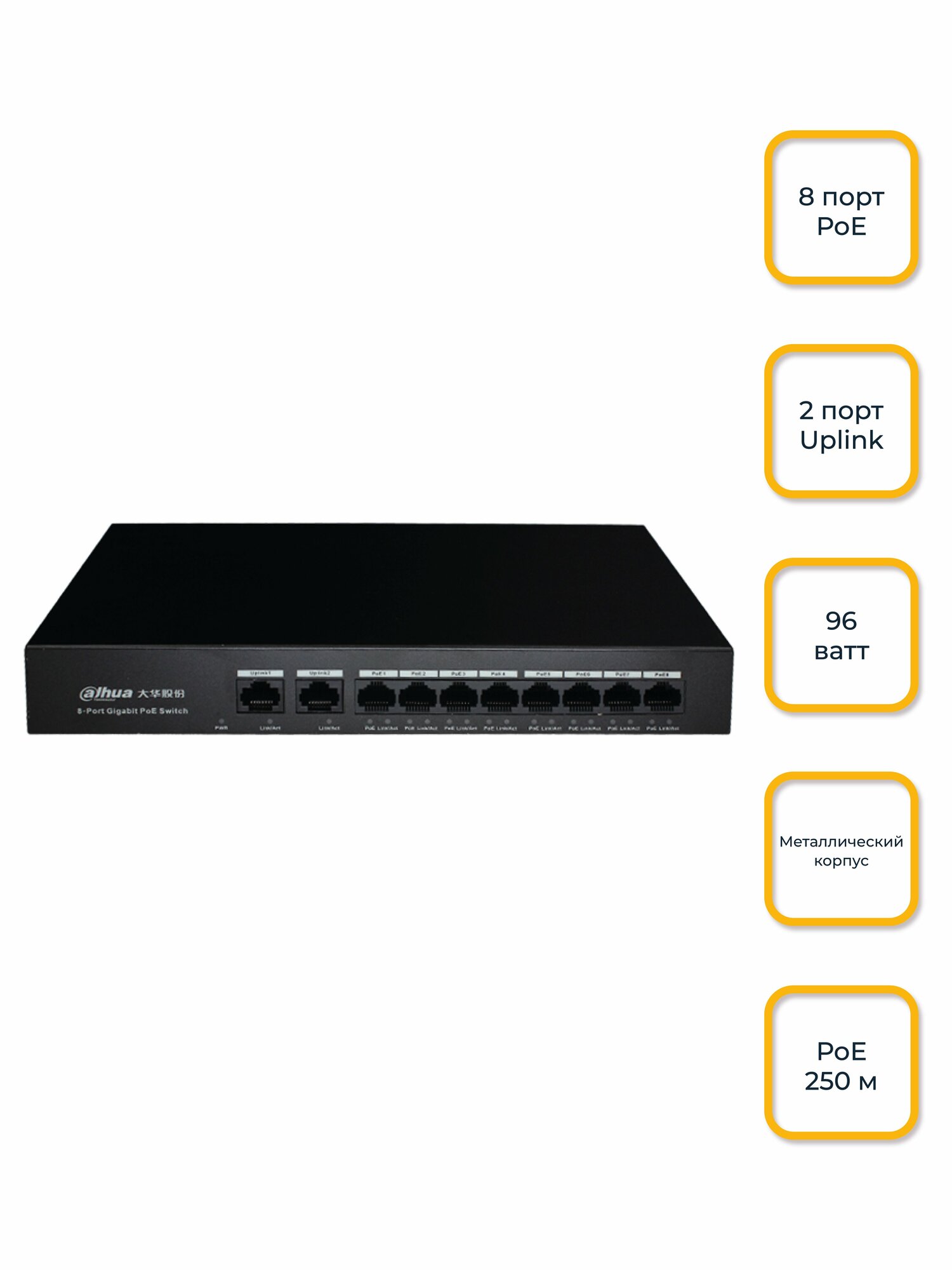 Сетевой коммутатор POE, DAHUA, DH-S3000C-8GT2GT-65, 1*1000mb, 1*10/100/1000mb, 8*10/100 POE интересное: