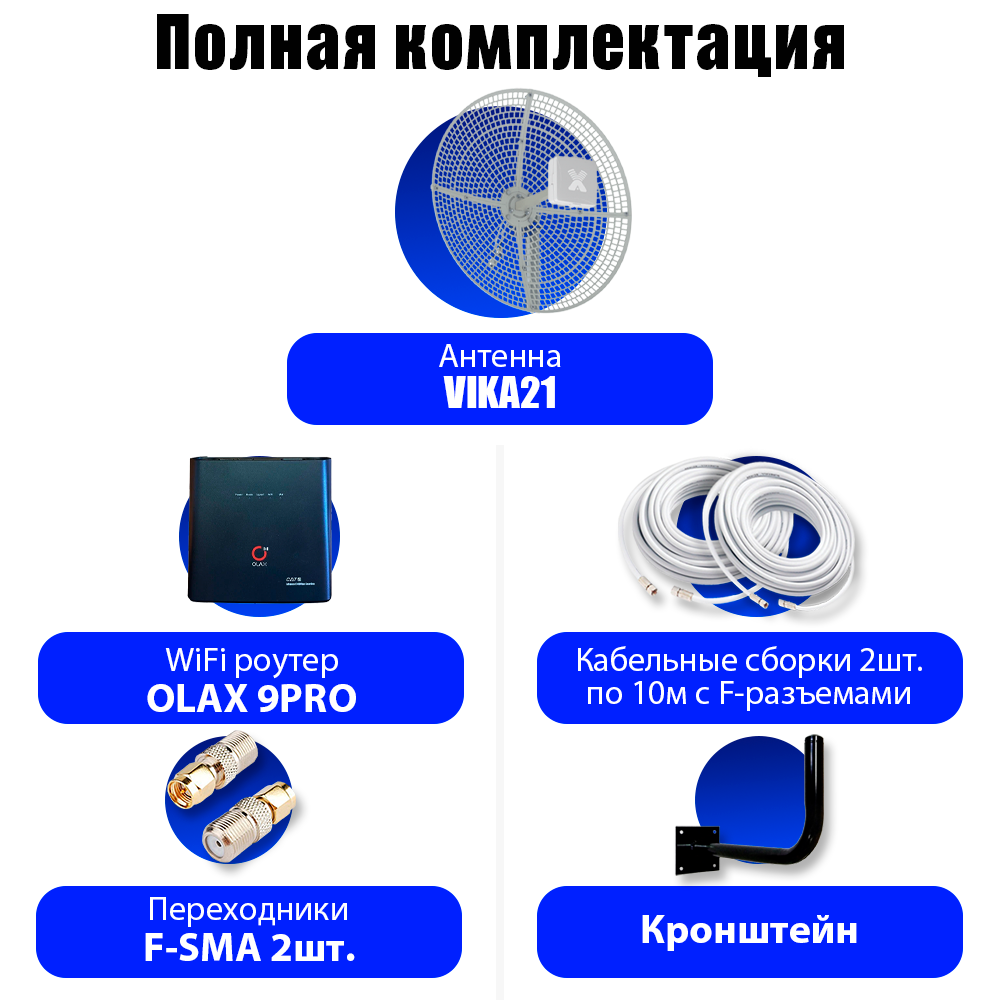 Комплект Интернета Антэкс Vika-21 LTE MiMO Антенна + 2 в 1 Модем WiFi Роутер OLAX AX9 PRO подходит Любой Безлимитный Интернет Тариф и Любая Сим карта интересное: