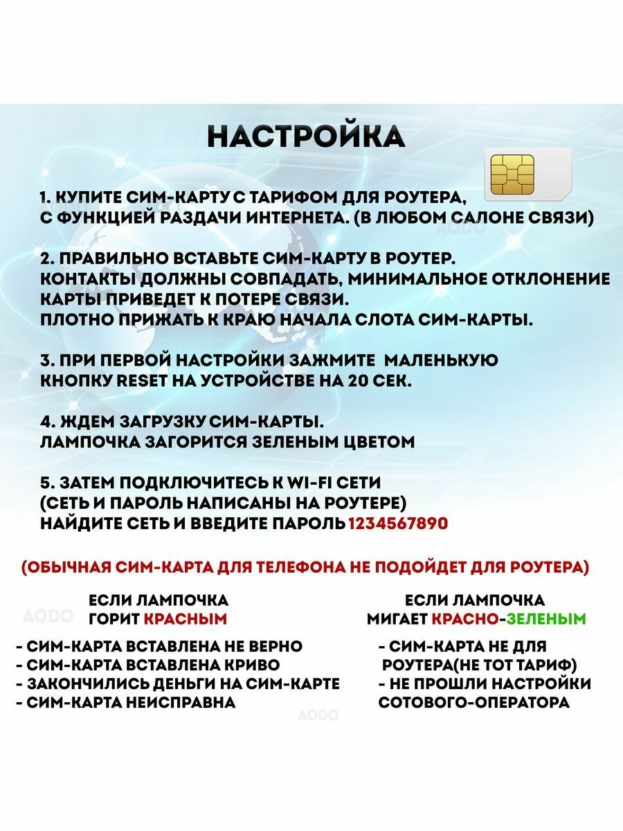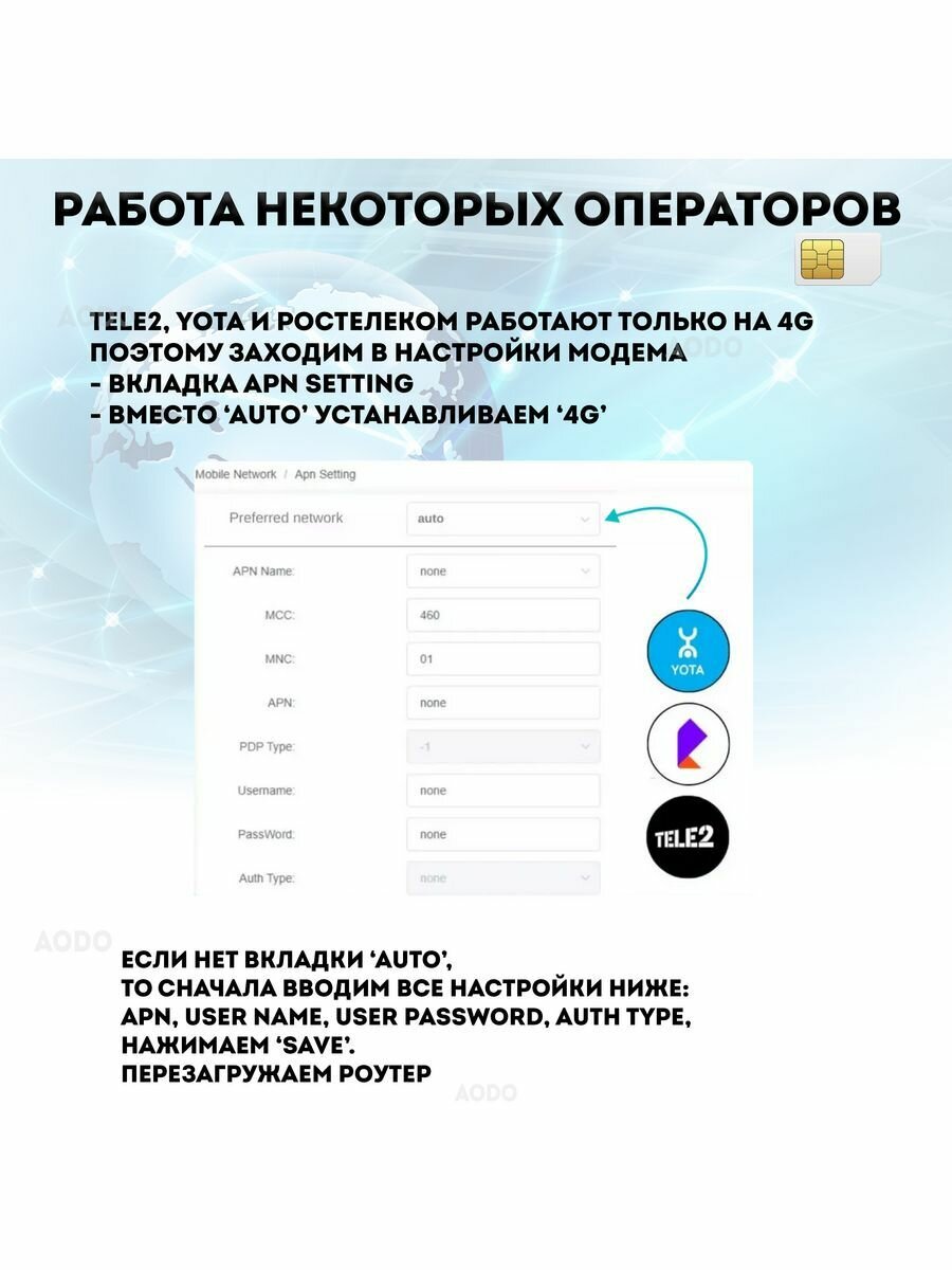 WI-FI роутер, мобильный модем 4G для сим карты AODO интересное: