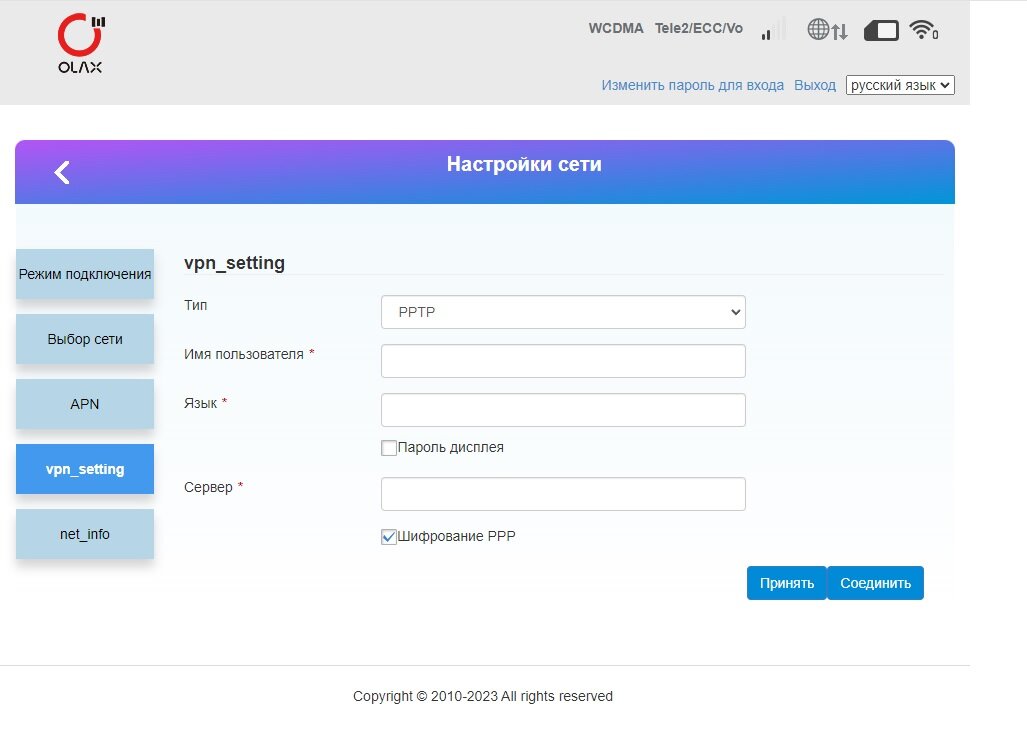 | Подключение к интернету (WAN) | SIM-карта |
