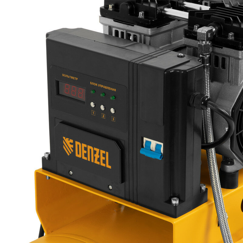 Купить Компрессор безмасляный, малошумный DLS 3300/100, 3300 Вт,3x1100, 100 л, 570 л/мин , блок управления Denzel 58032