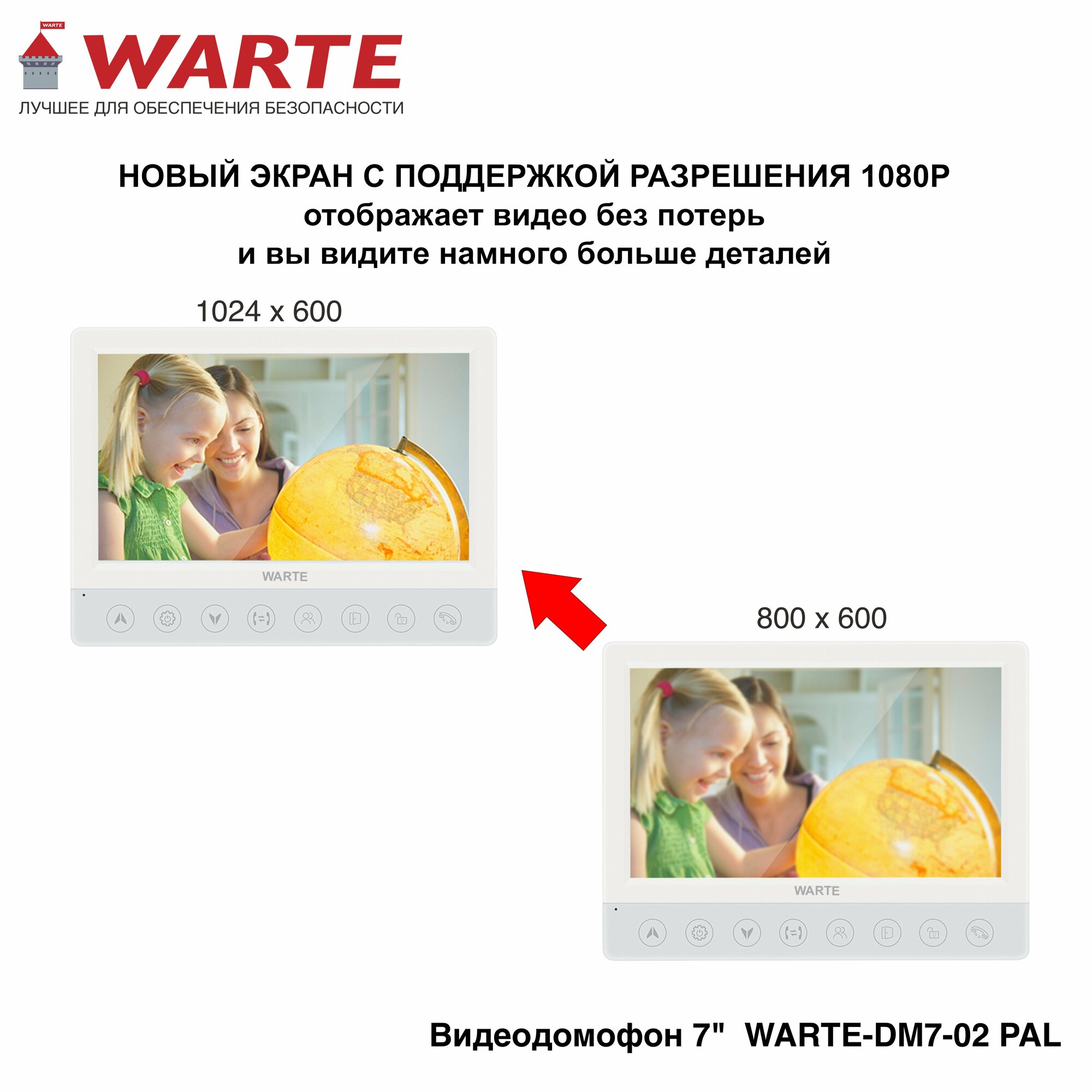 Видеодомофон для квартиры или дома WARTE-DM7-02 PAL белый 7" интересное: