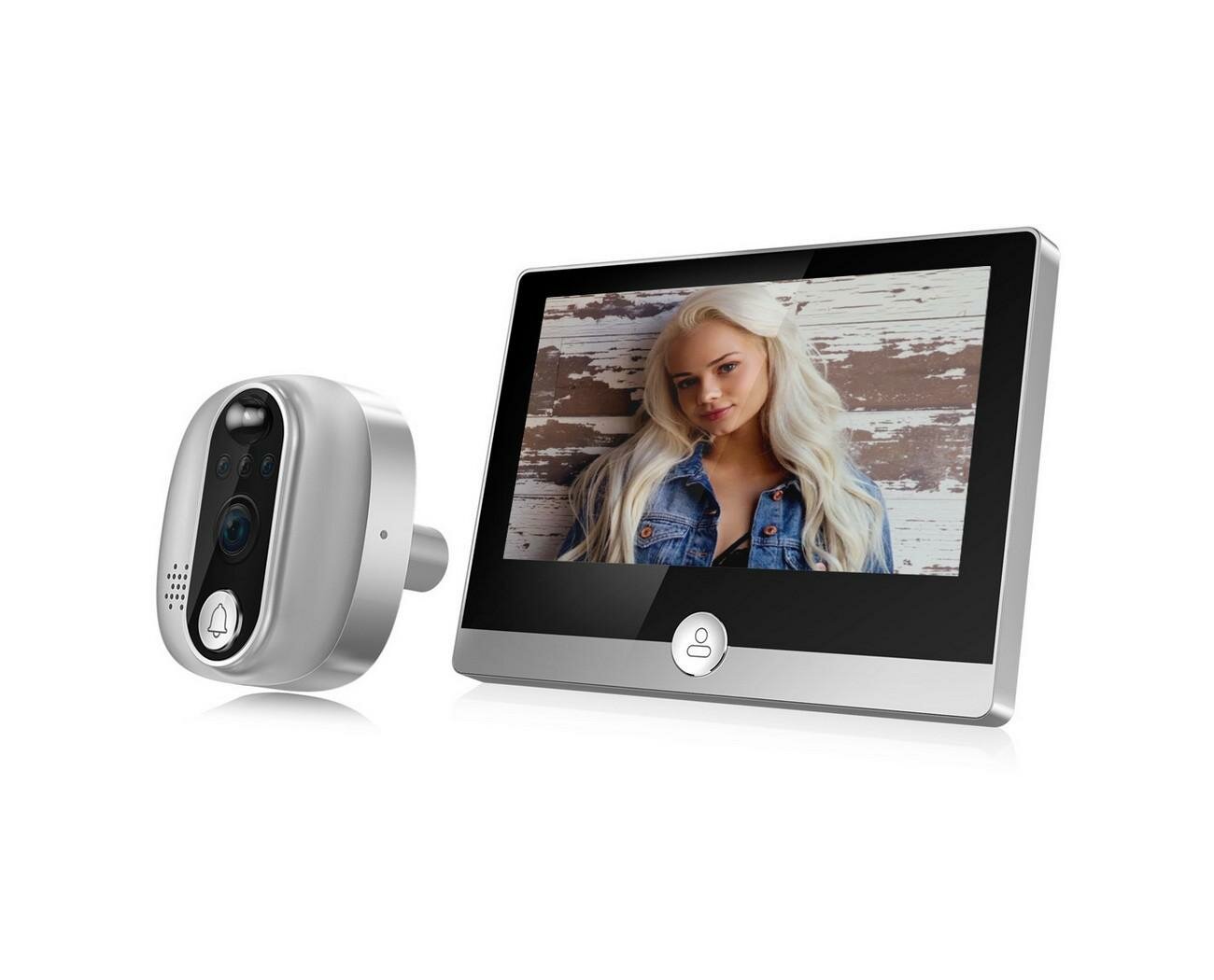 Купить Цветной HD видеоглазок Tuya Wi-Fi для двери iHome Mod:Sw1-Tuya (O46215TU) с датчиком движения и записью на SD карту. Экран 4,3 дюйма. Камера 2MP