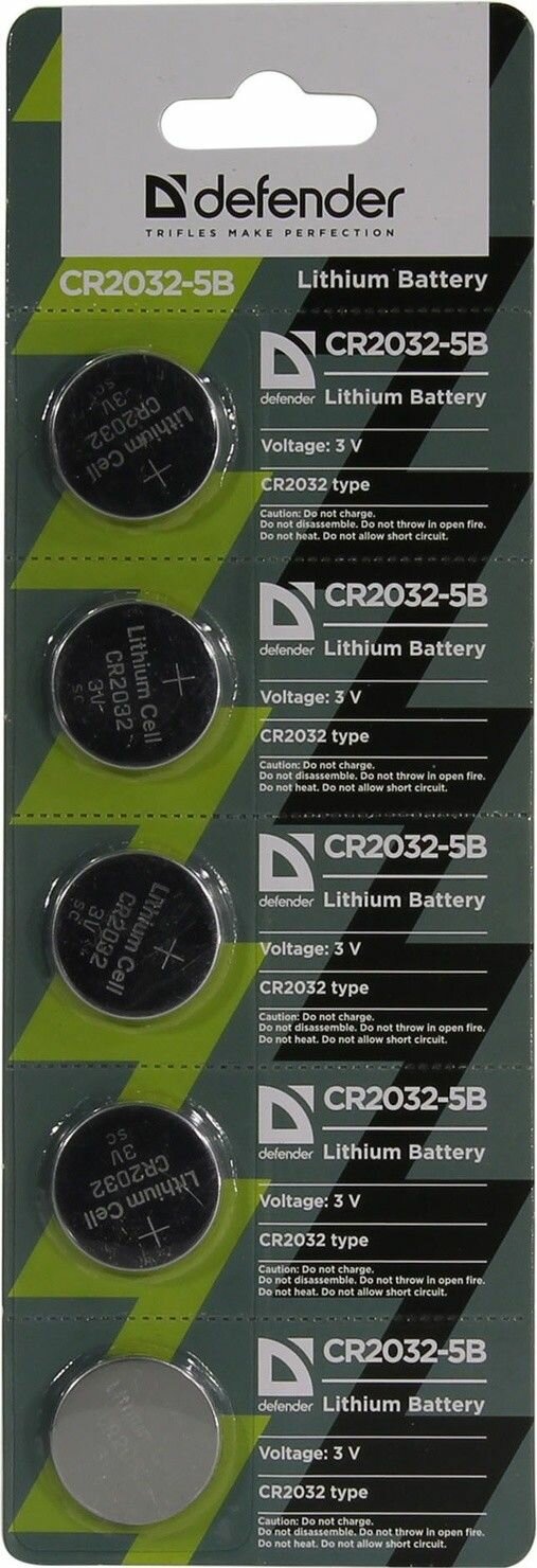Батарейка CR2032 3В литиевая Defender CR2032-5B, в блистере 5шт. интересное:
