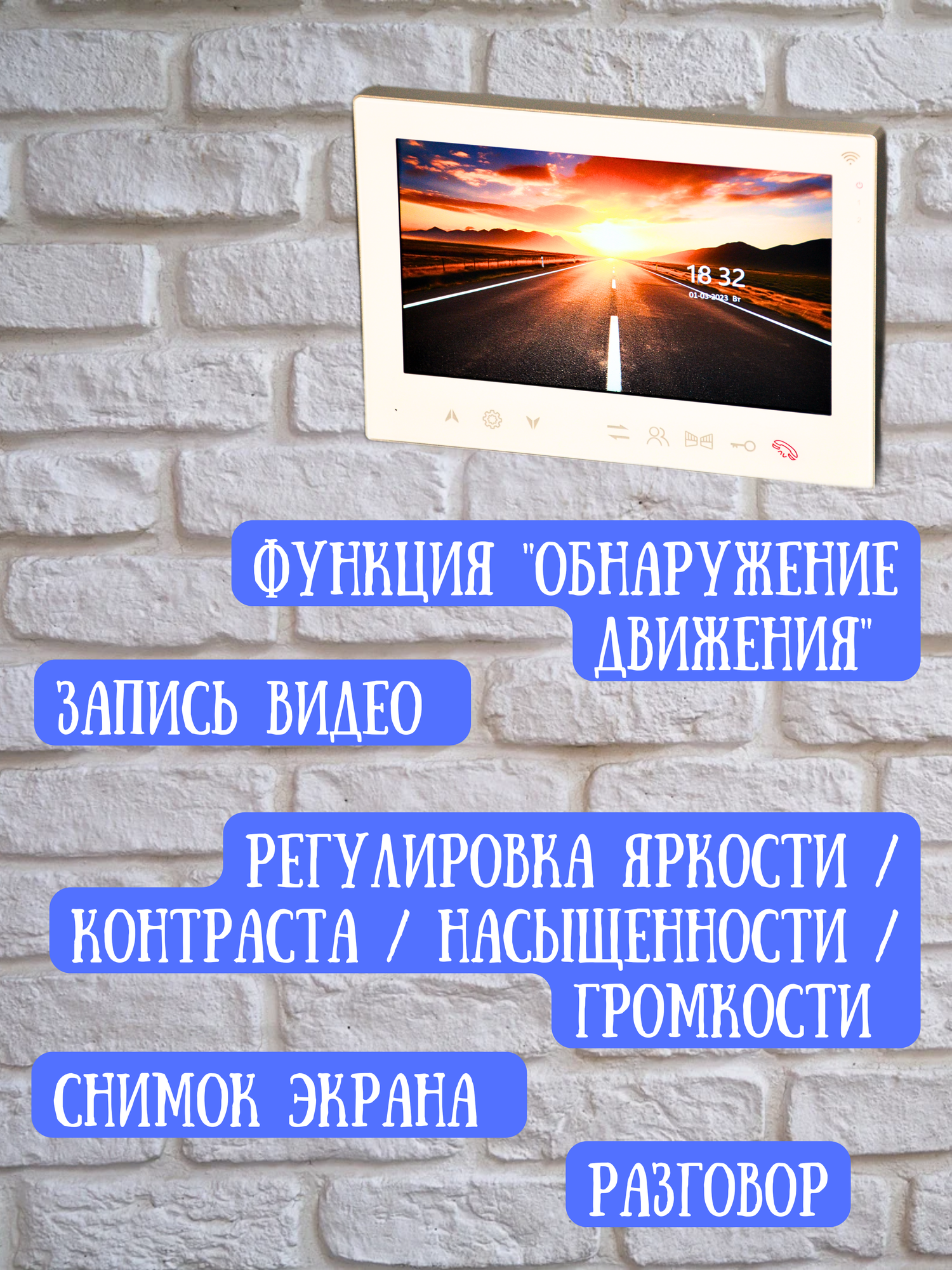 | Дополнительная информация | функция часы, фоторамка, удаленное управление, подключение доп. мониторов, камер, датчиков |