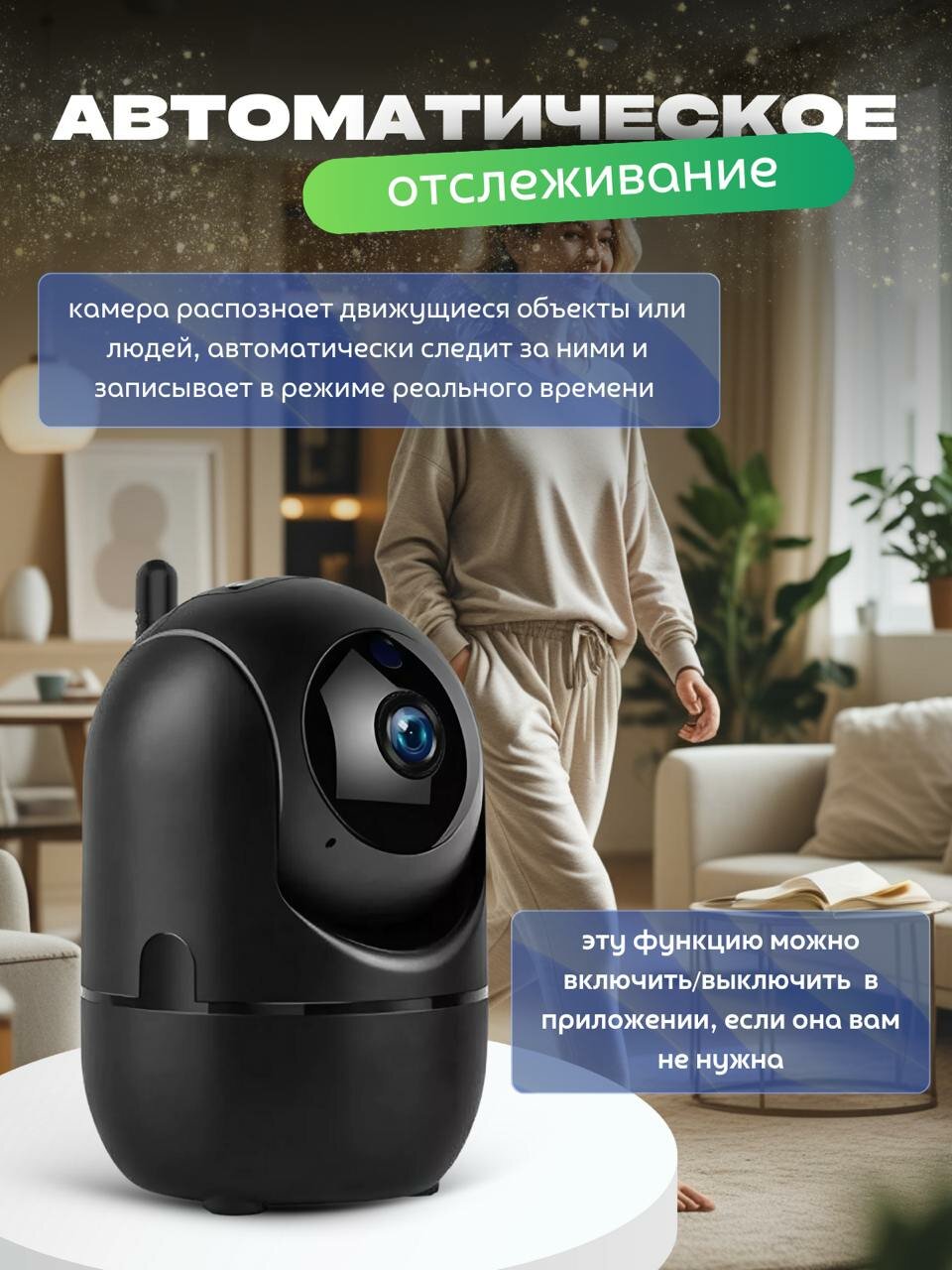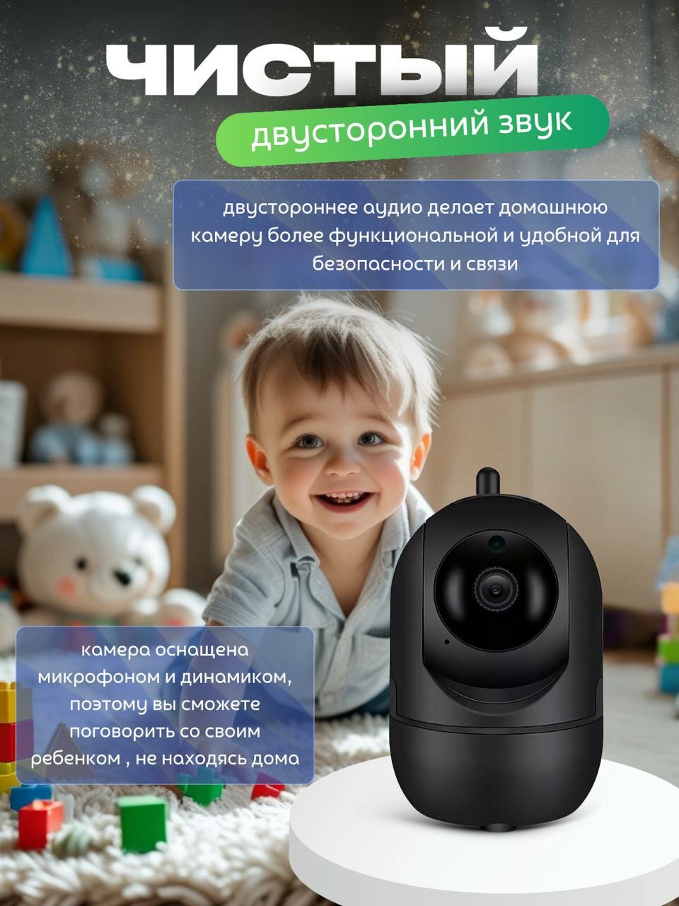 Видеоняня поворотная 360 градусов / Камера видеонаблюдения с Wi-Fi и двусторонней аудио связью черная интересное: