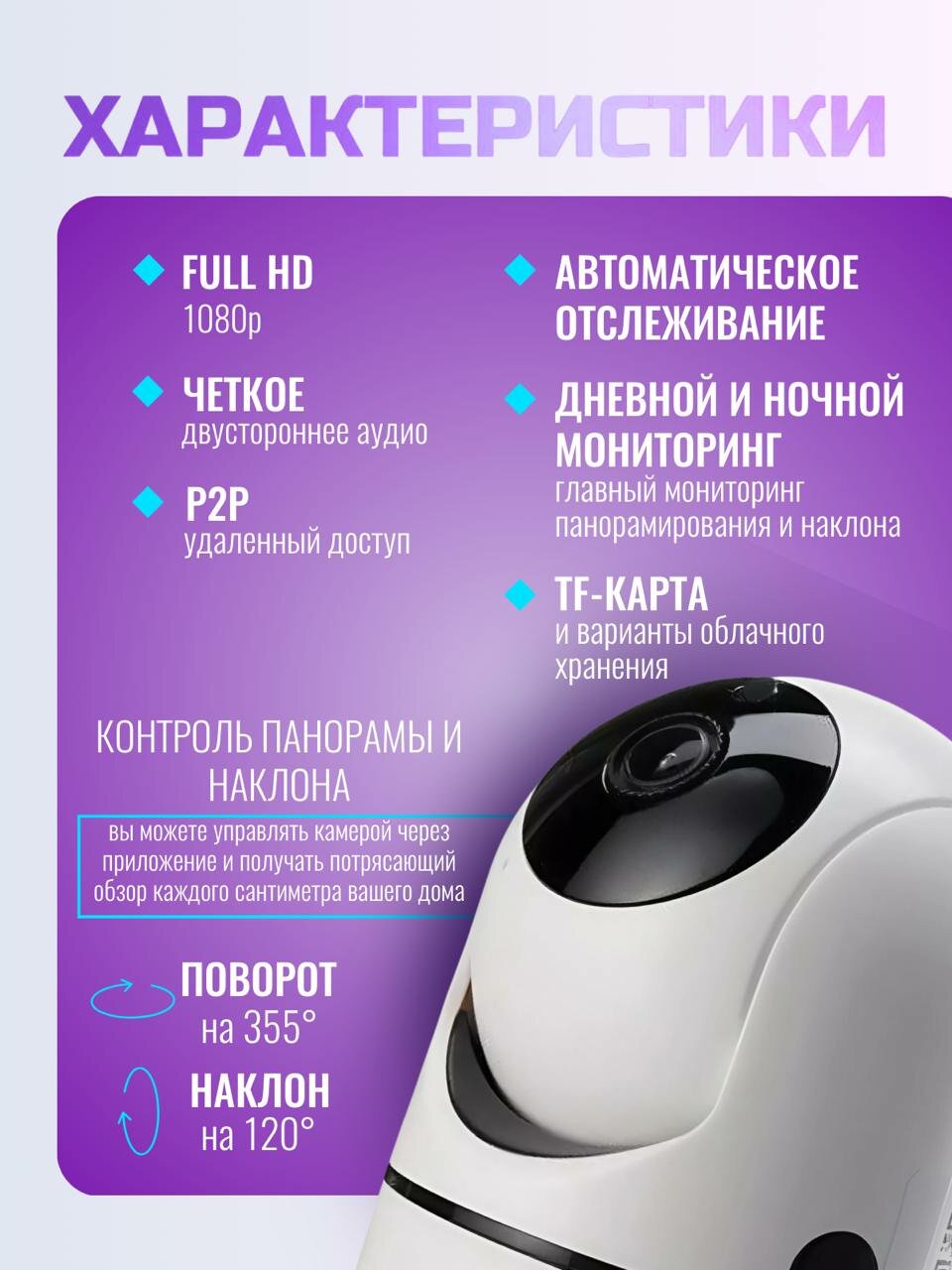 Беспроводная ip камера видеонаблюдения wi-fi с обзором 360 градусов, ночной съемкой и датчиком движения белая интересное: