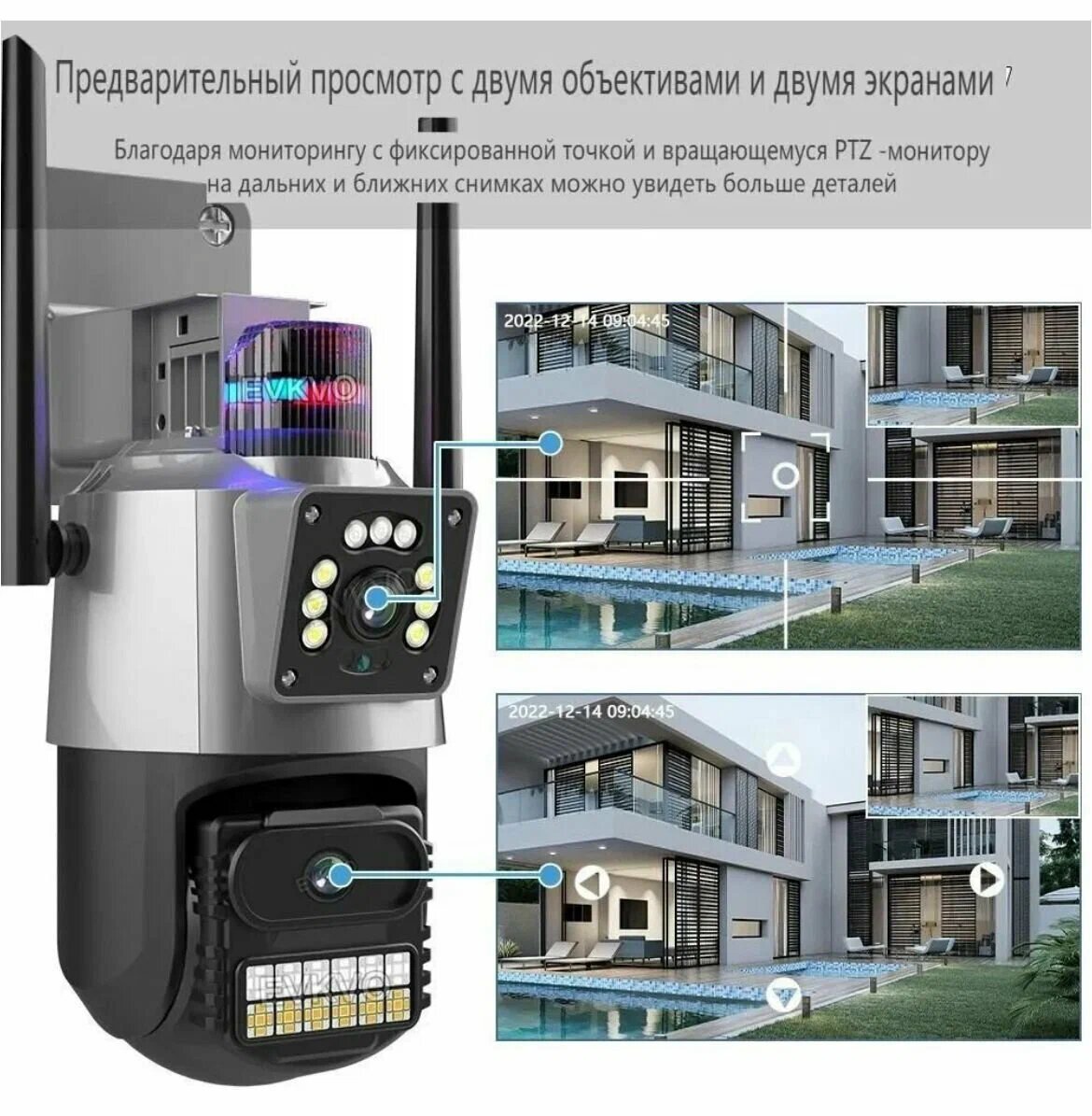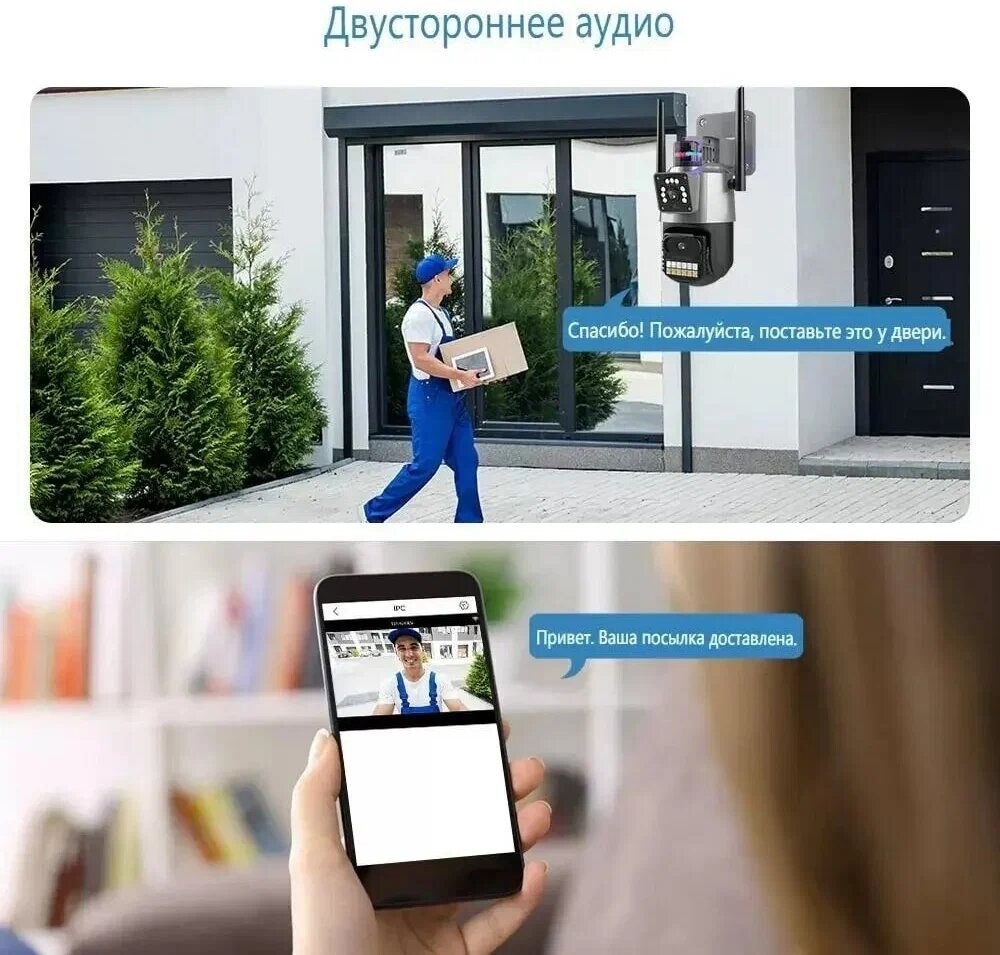 Двойная уличная камера видеонаблюдения ,wifi, sd-слот, цветная встроенная сирена, ночное видение, датчик движения интересное: