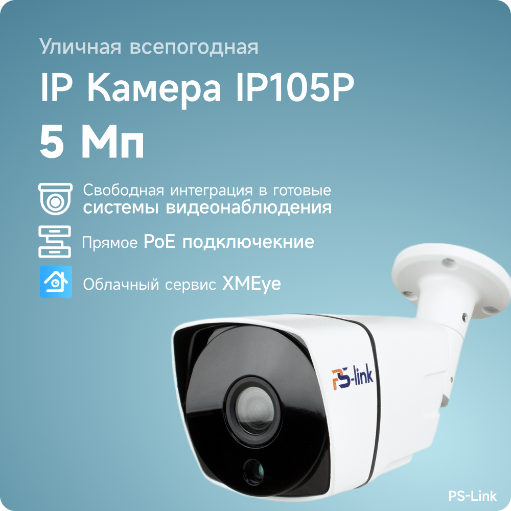 PS-link Цилиндрическая камера видеонаблюдения IP 5Мп Ip105p со встроенным POE питанием 1719 .